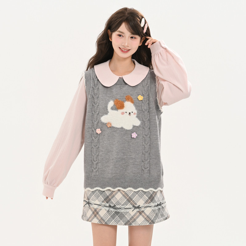 灯芯绒半裙 小马刺绣圆领毛衣针织衫 BANANA CICI2025年秋冬新款