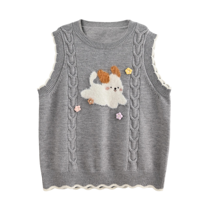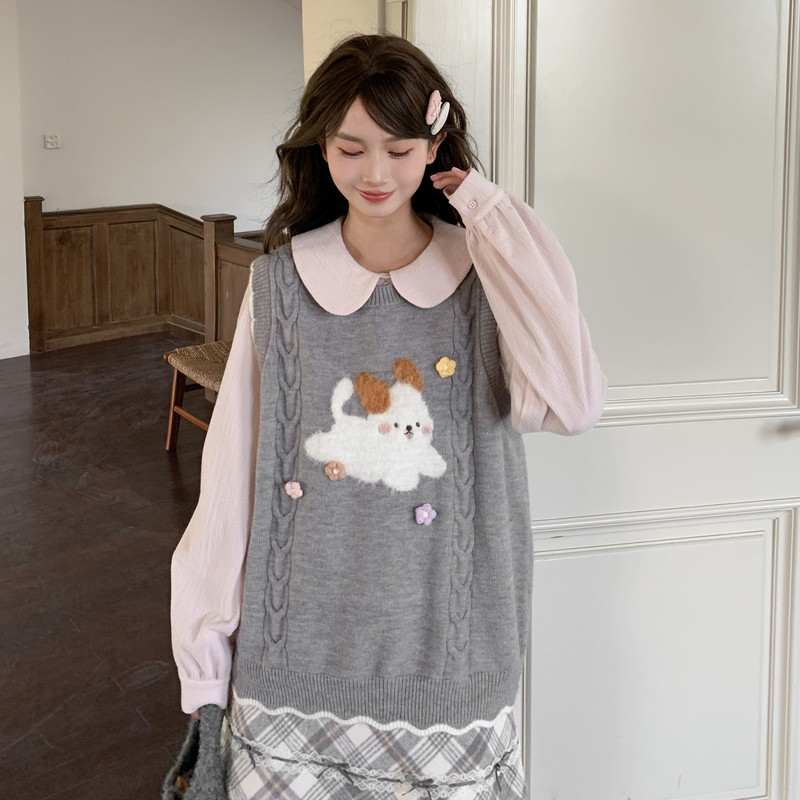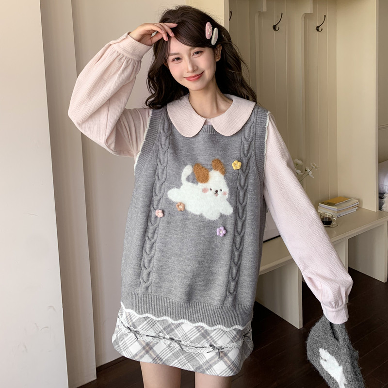女百搭毛衣外套 针织开衫 KXLFCHN空穴来风 秋冬牛角扣兔子绣花长袖
