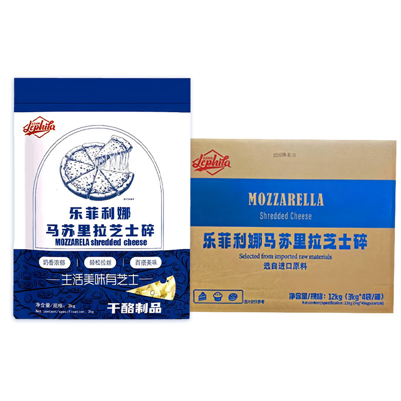 乐菲利娜马苏里拉芝士碎3kg拉丝奶酪芝士披萨焗饭家用烘焙整箱用