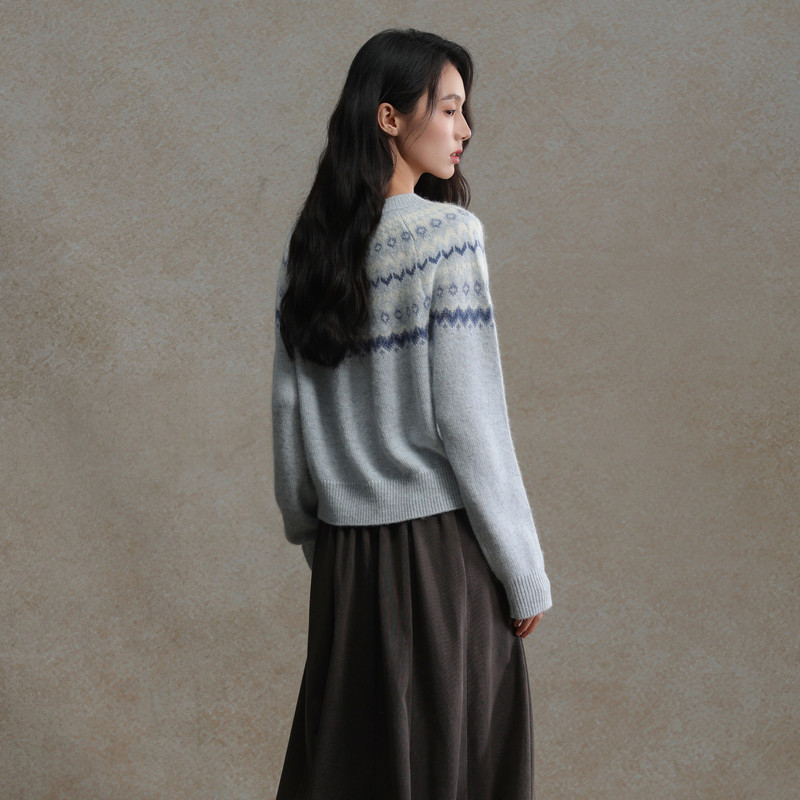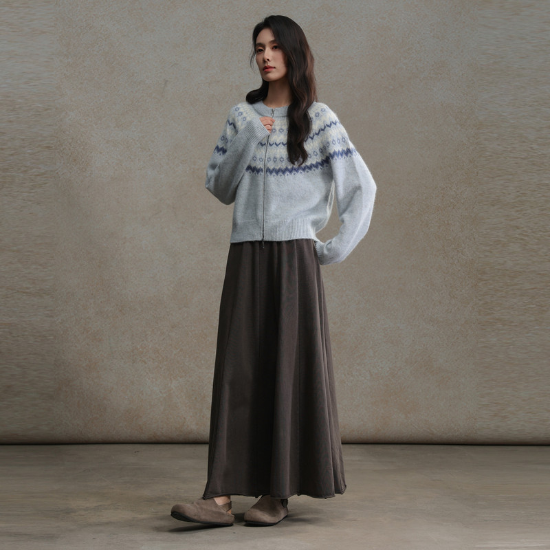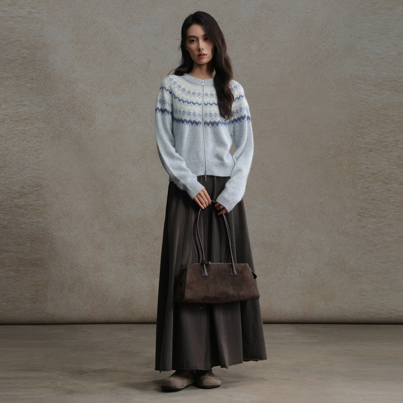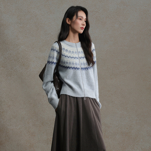 AY54KS348 费尔岛花型圆领双拉链针织开衫 AIRIQI商场同款 25冬新款
