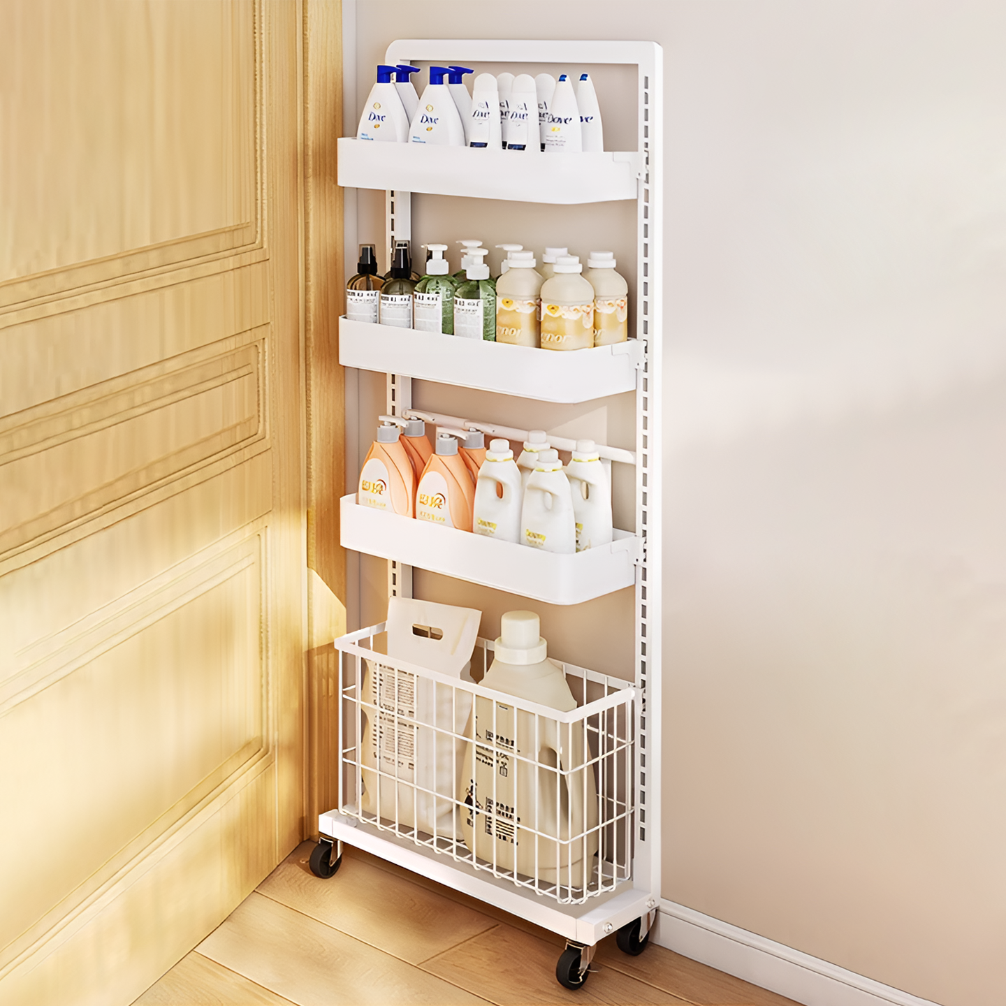 浴室收纳筐脏衣篮置物架一体家用小推车卫生间杂物洗漱用品储物架