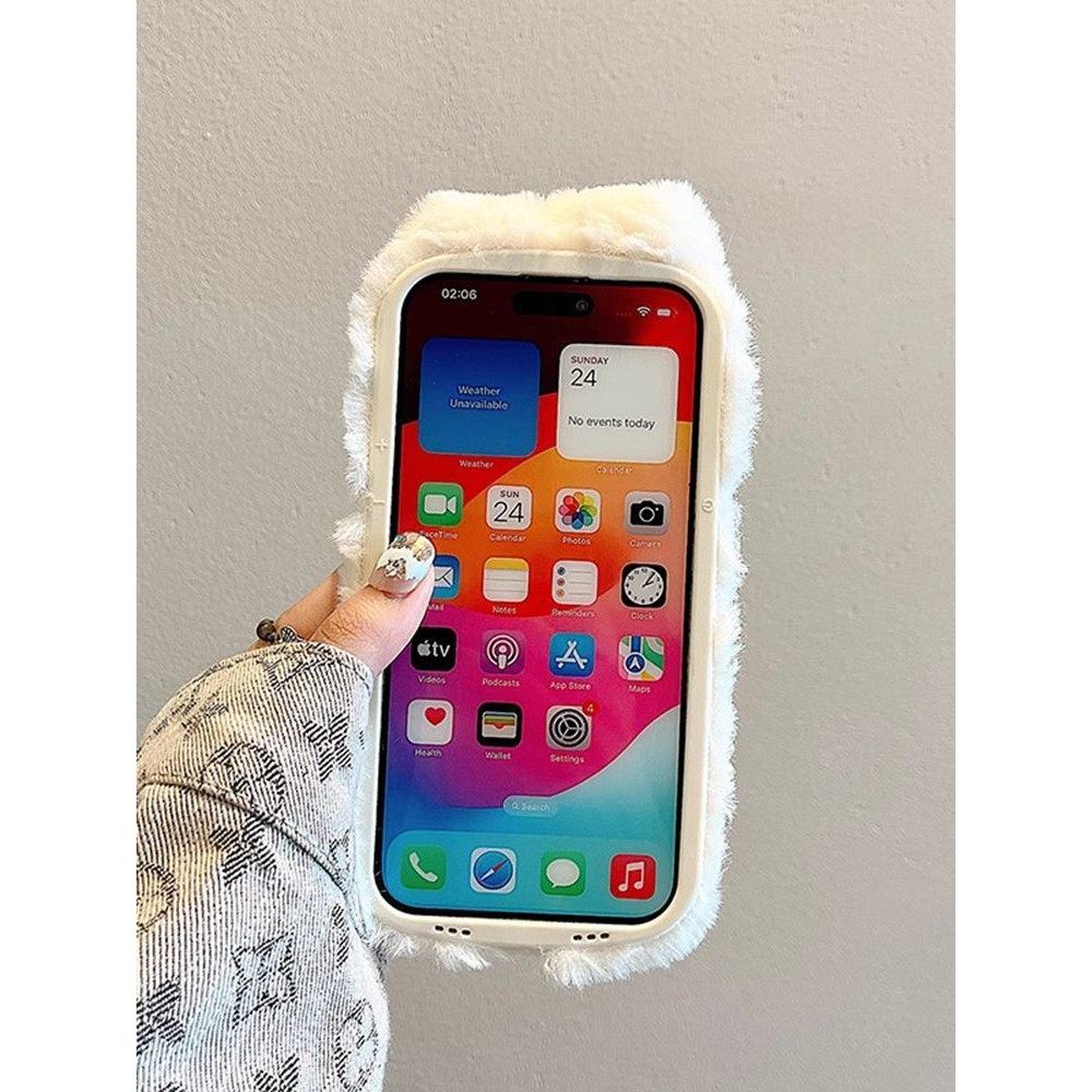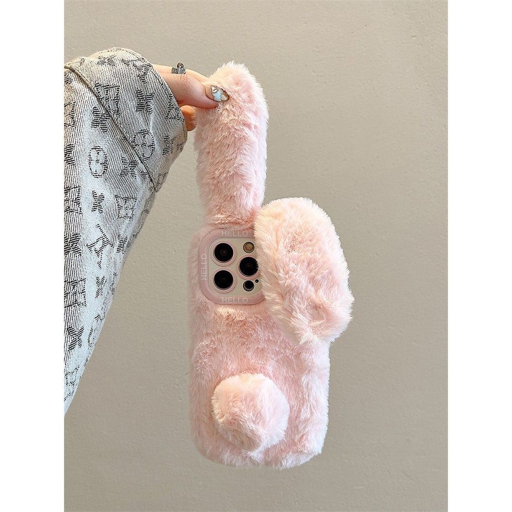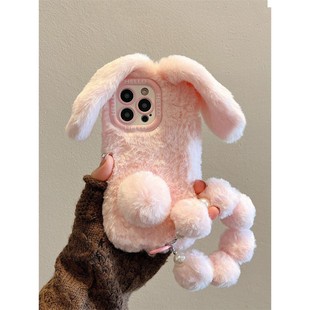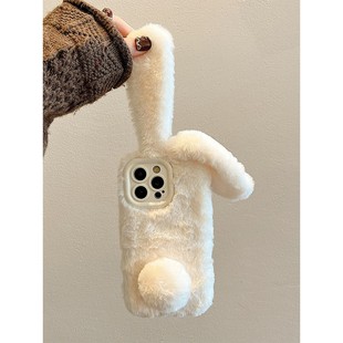 秋冬天毛绒兔适用于苹果手机壳17promax新款 16女15保暖13超好看12带挂绳