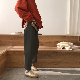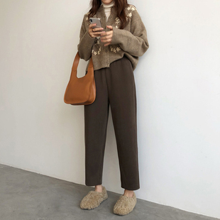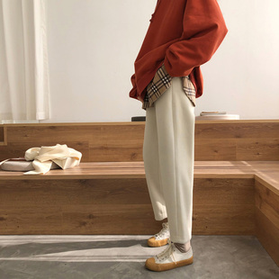白色羊毛呢小个子阔腿裤 女秋冬加绒直筒梨形报恩九分奶奶萝卜卫裤