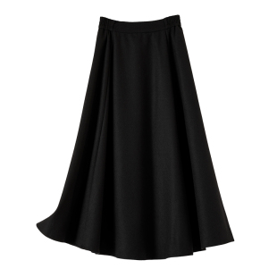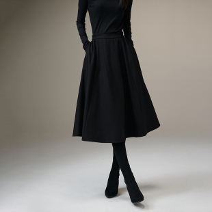 晚白秋冬新款 绵羊毛黑色裙子高腰气质百搭伞裙a字半身裙