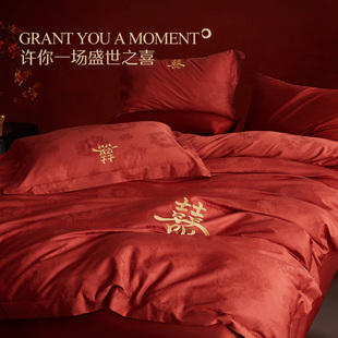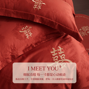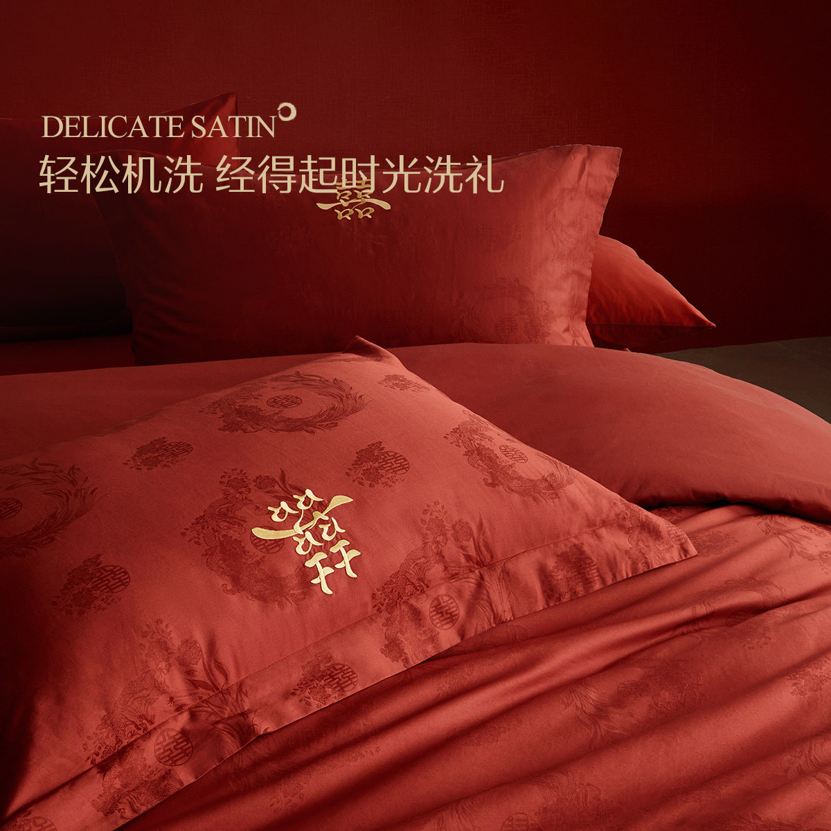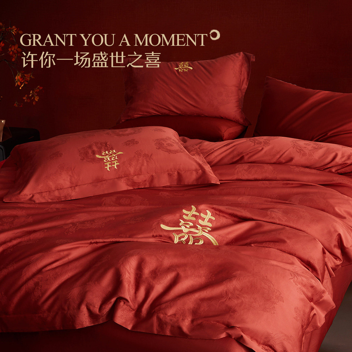 水星家纺婚庆四件套60支长绒棉提花刺绣结婚套件新中式 婚嫁25床品
