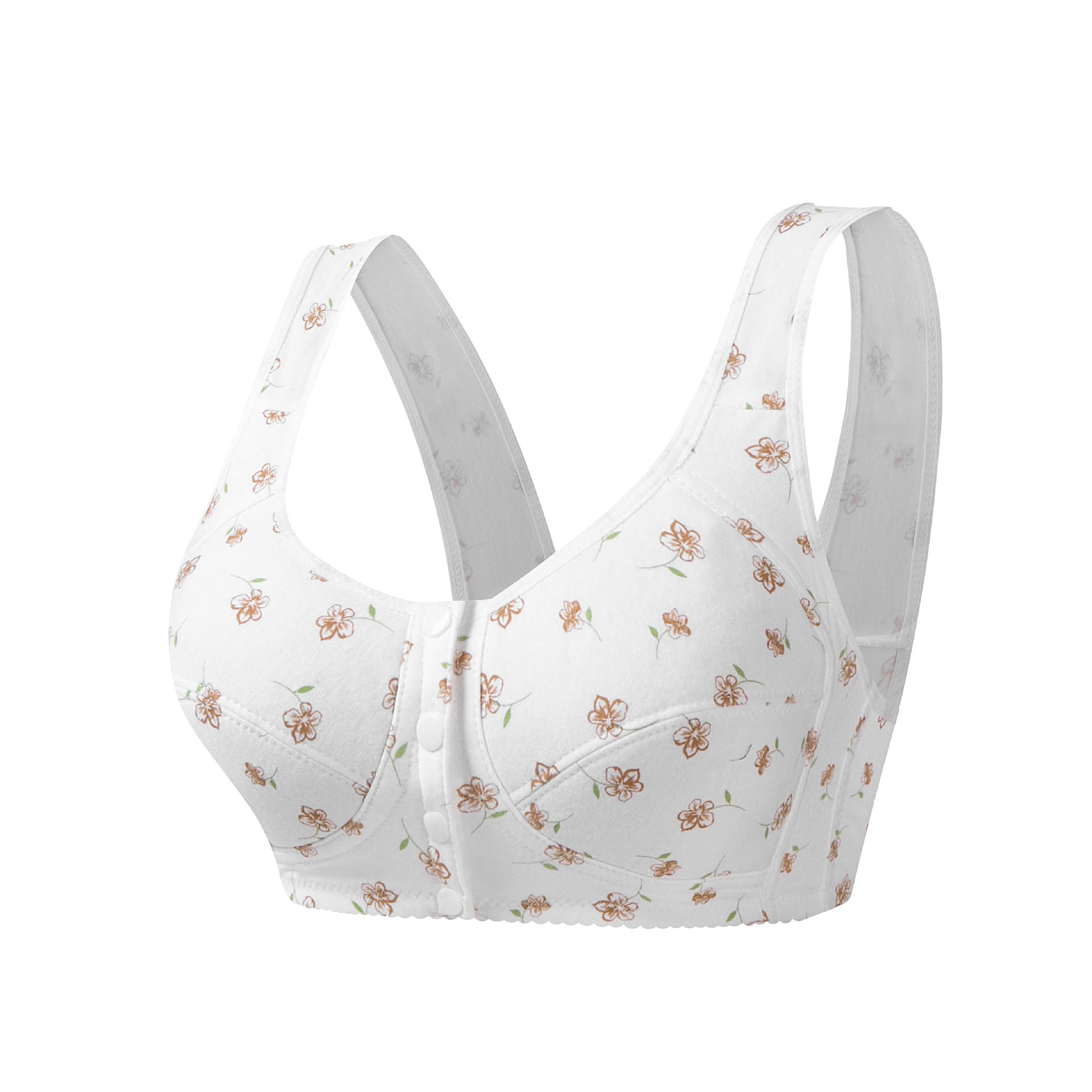 睡眠文胸罩夏 透气前开扣聚拢无钢圈背心式 中老年妈妈大码 内衣薄款