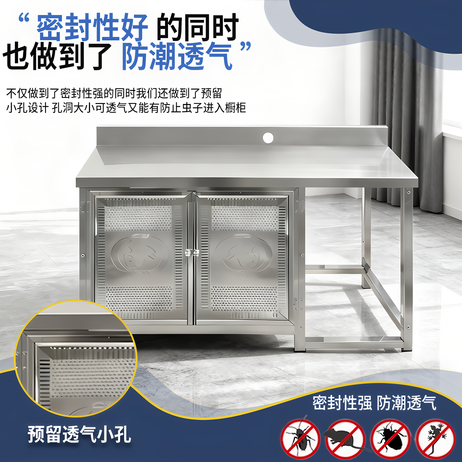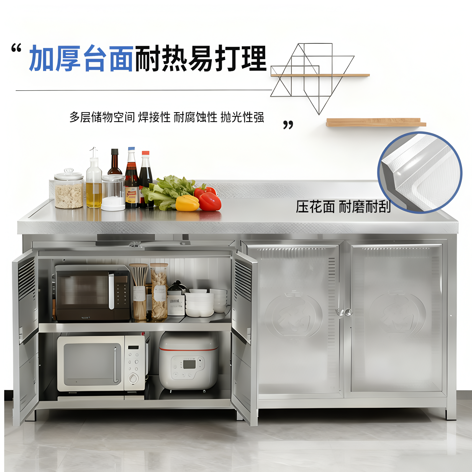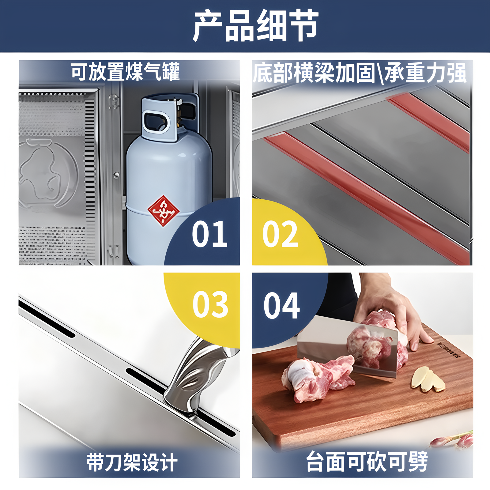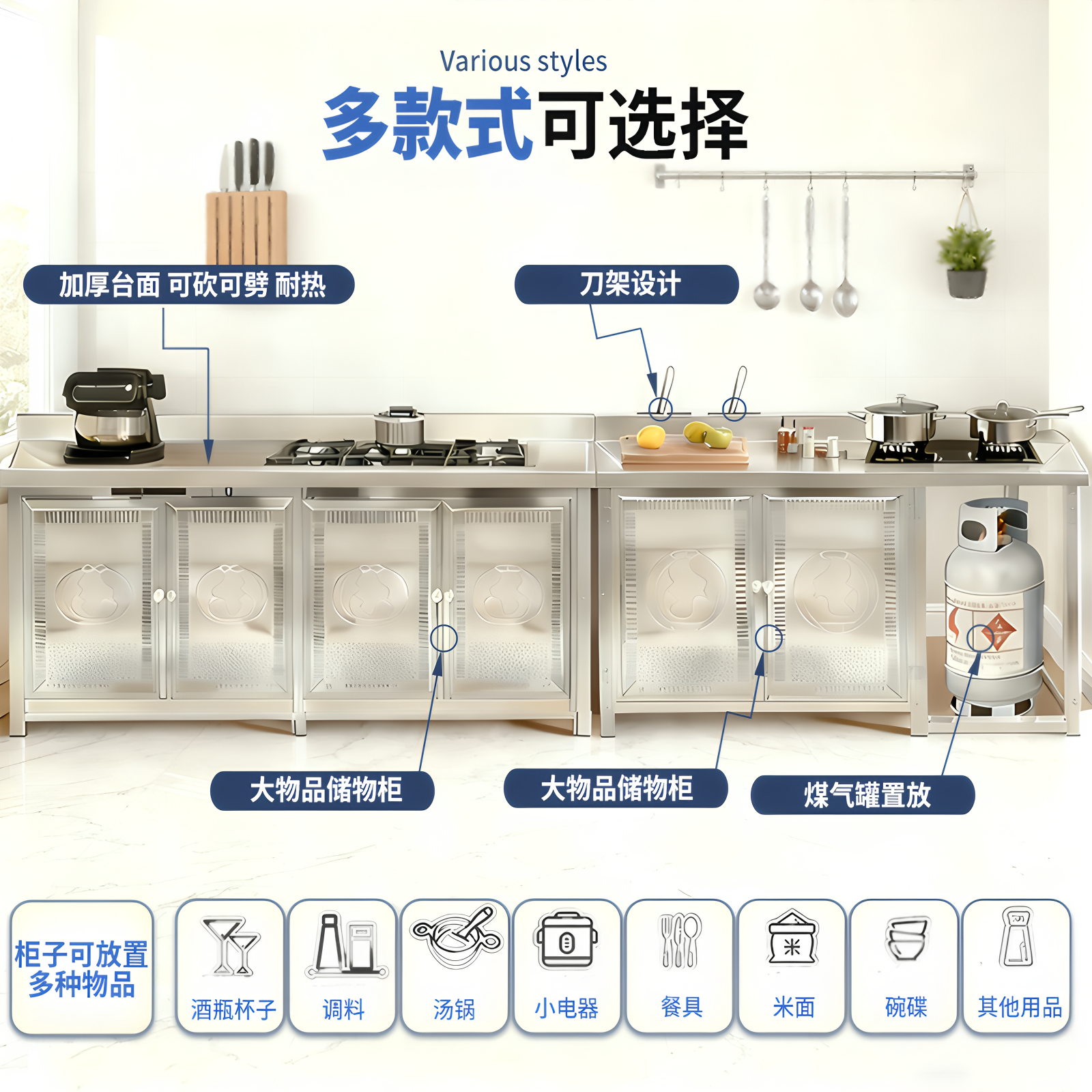 不锈钢一体橱柜家用厨房灶台煤气罐槽多层操作台多功能储物柜带门