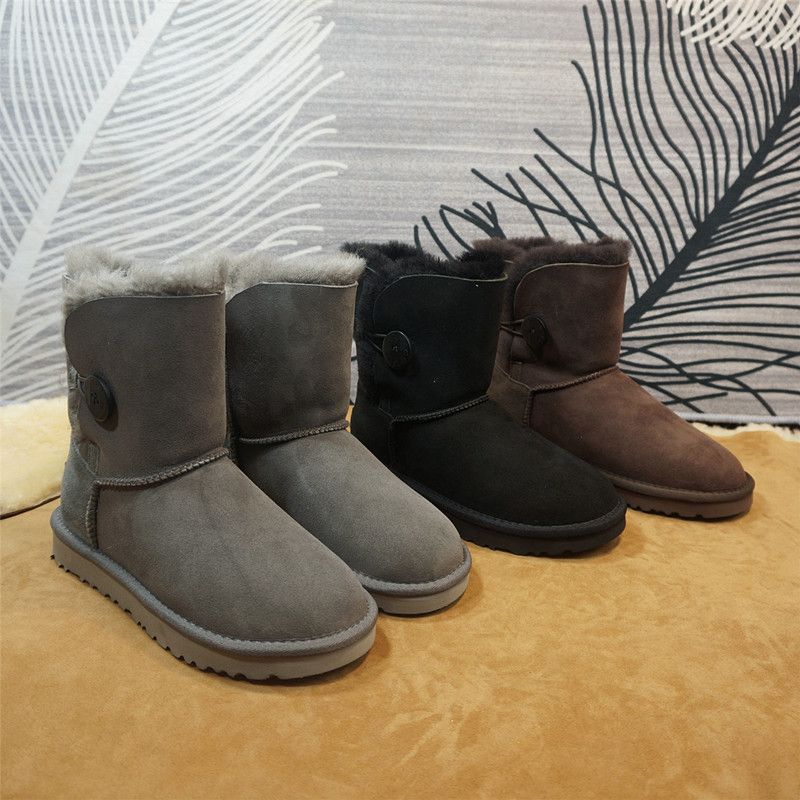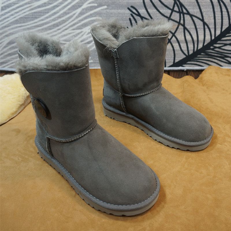 真皮羊皮毛一体雪地靴 新款 中筒靴一粒扣保暖棉靴 3冬季