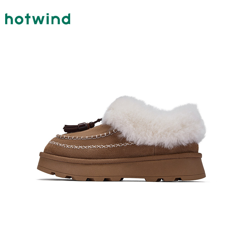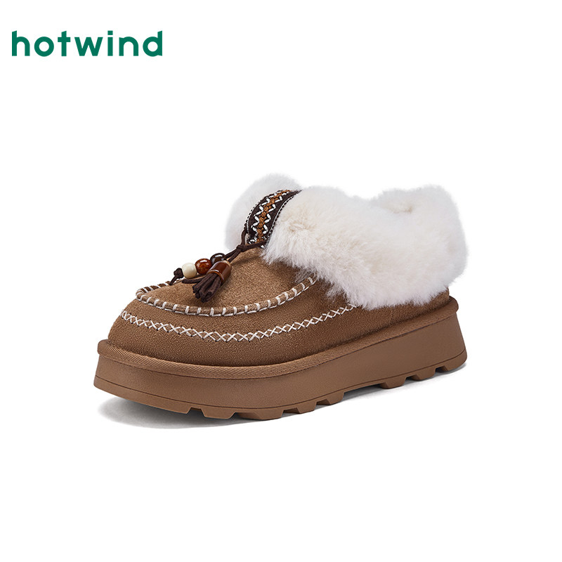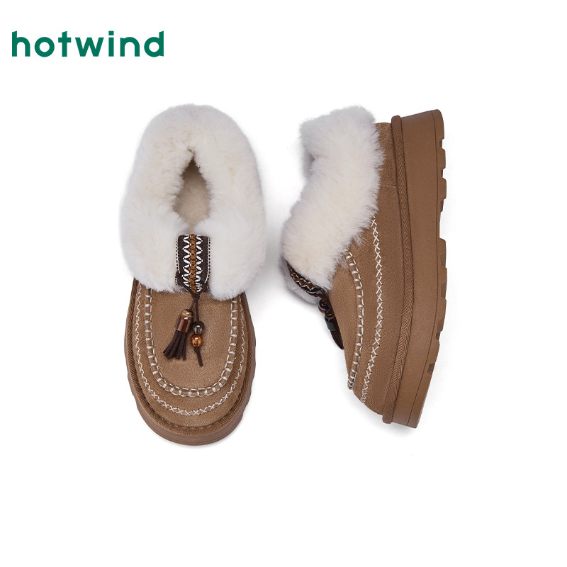 棕色百搭毛毛鞋 热风厚底雪地靴女款 复古休闲棉鞋 新款 子 2025年冬季