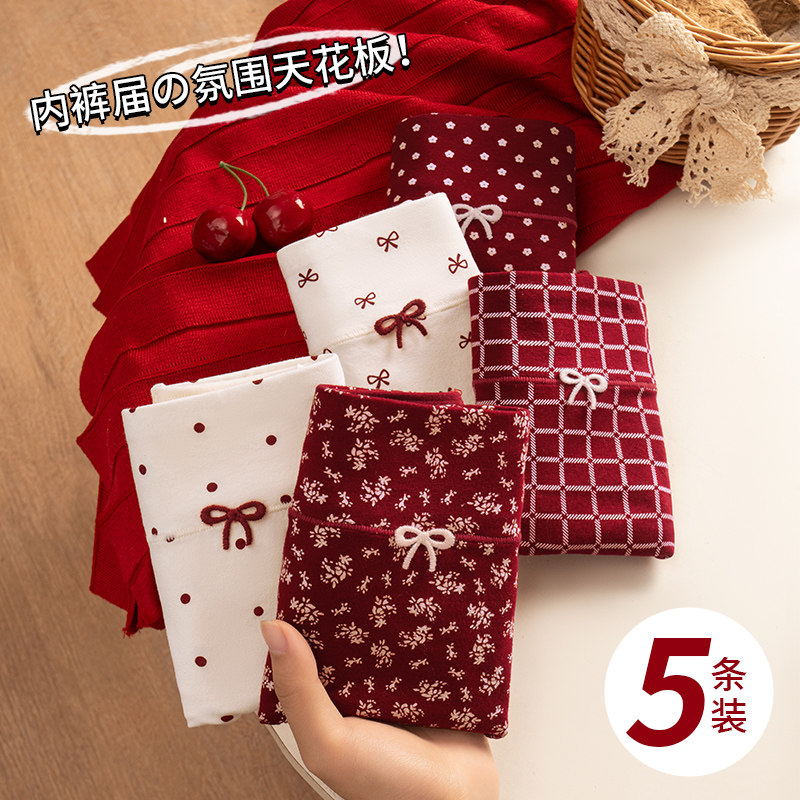 全棉a类女生四角裤 猫人平角内裤 女士纯棉抗菌红色本命年2025新款