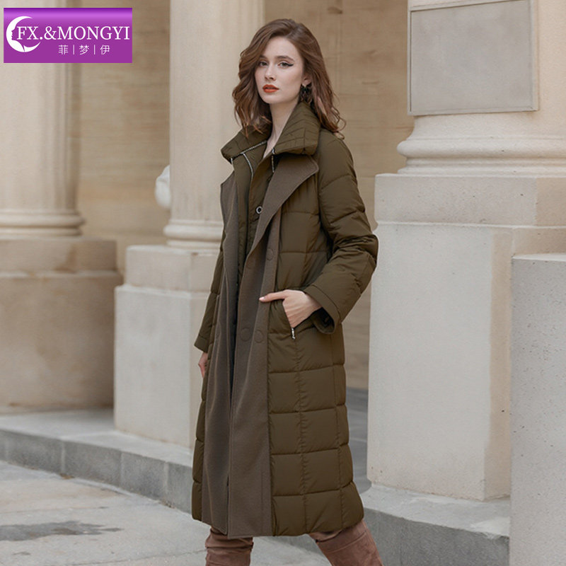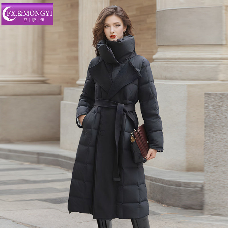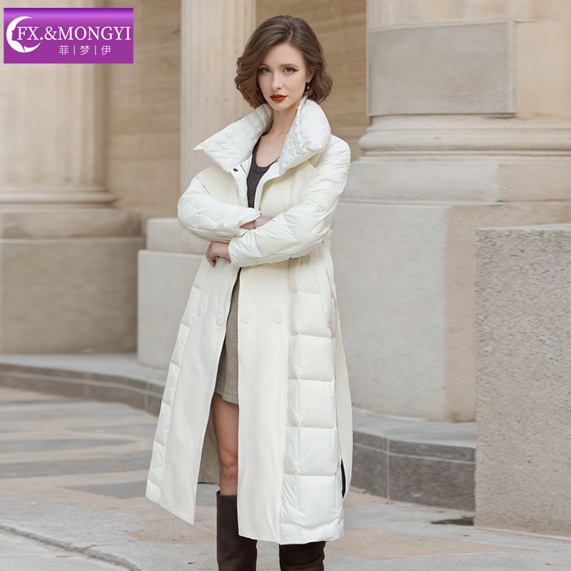 外套 中长款 菲梦伊白色立领白鸭绒羽绒服女冬季 高品质轻薄系带修身