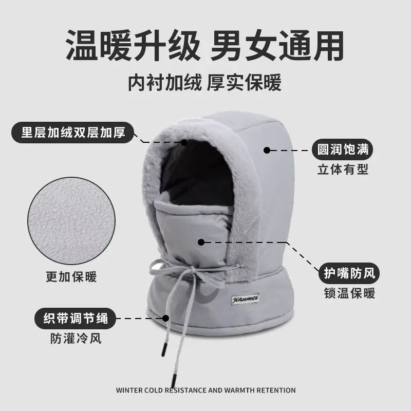 冬季 户外骑行雷锋帽子男女防寒围脖一体加绒百搭保暖帽加厚防风帽