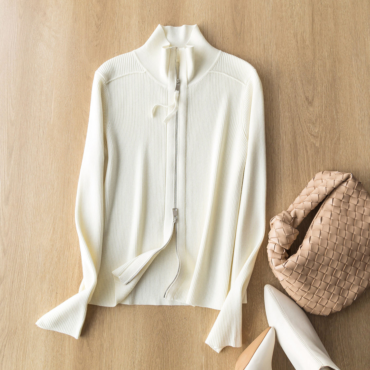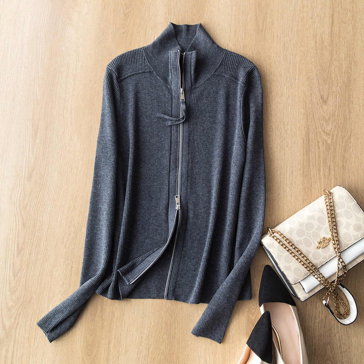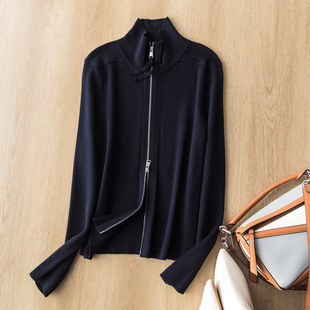 高端好货立领双开拉链针织开衫 短外套气质百搭显瘦羊毛打底上衣潮