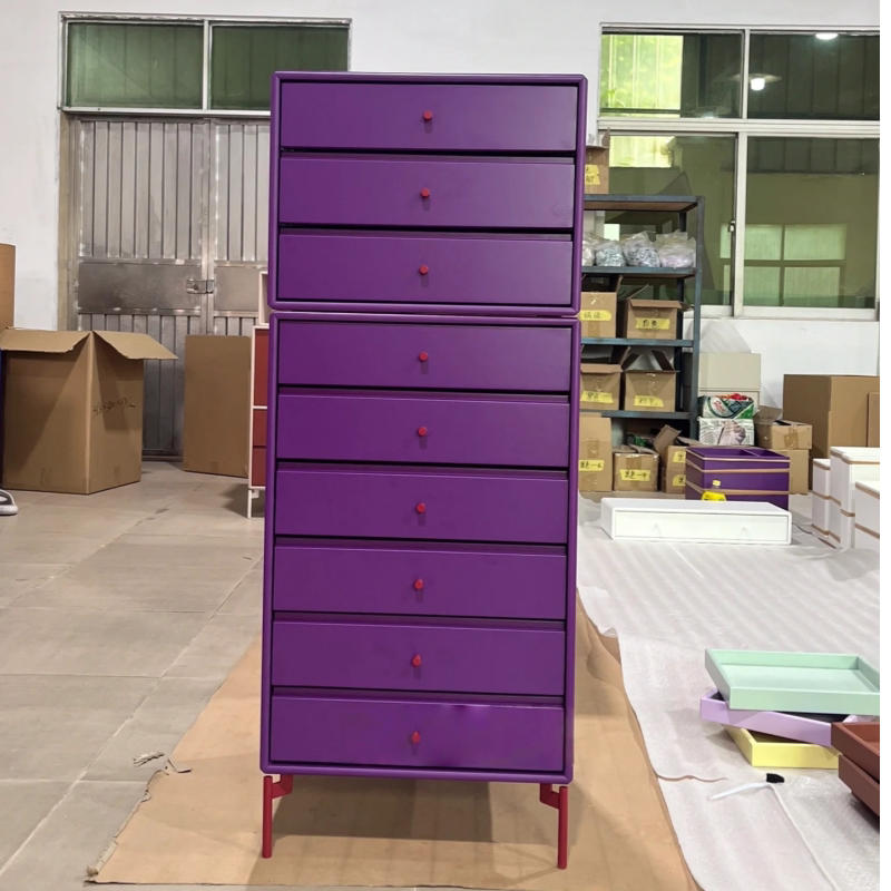 家用卧室床头柜铁皮斗柜多层大容量客厅铁皮抽屉收纳柜钢制置物柜