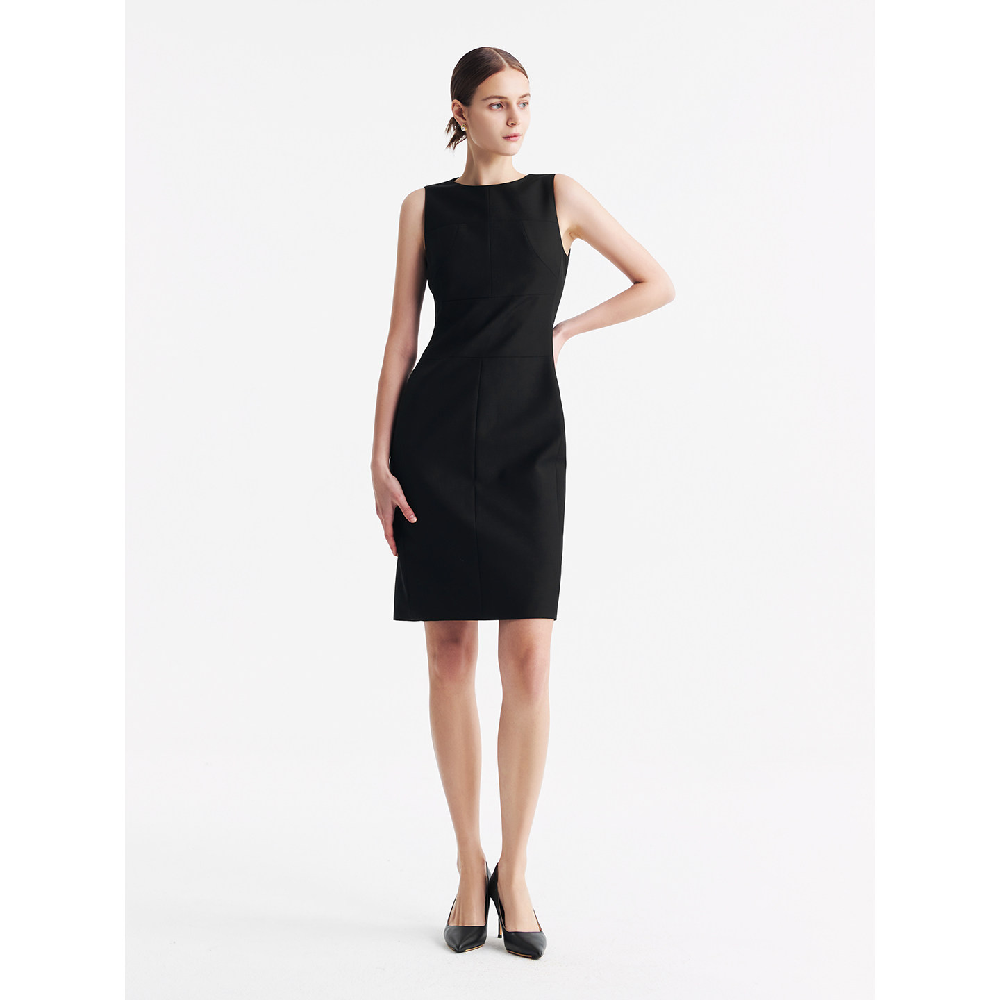 无袖 黑通勤 收腰连衣裙羊毛半裙女 Harvard搭配学府西装 TieForHer