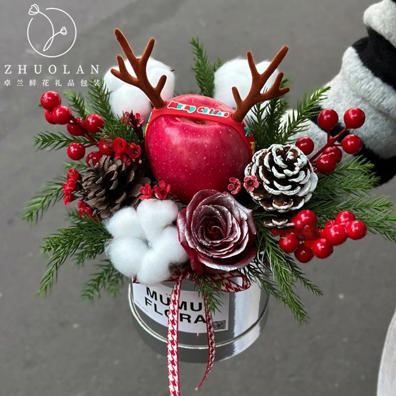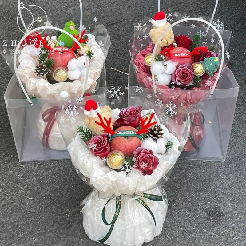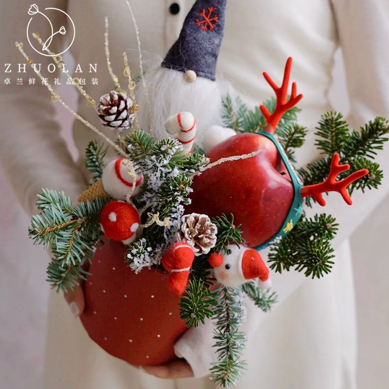 饰 diy材料花艺装 2025圣诞节新品 苹果花束托平安夜礼物礼品包装