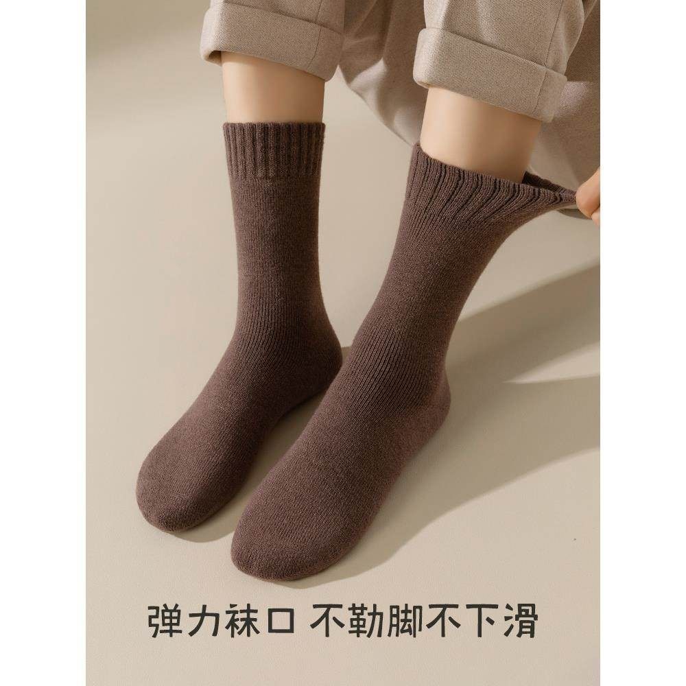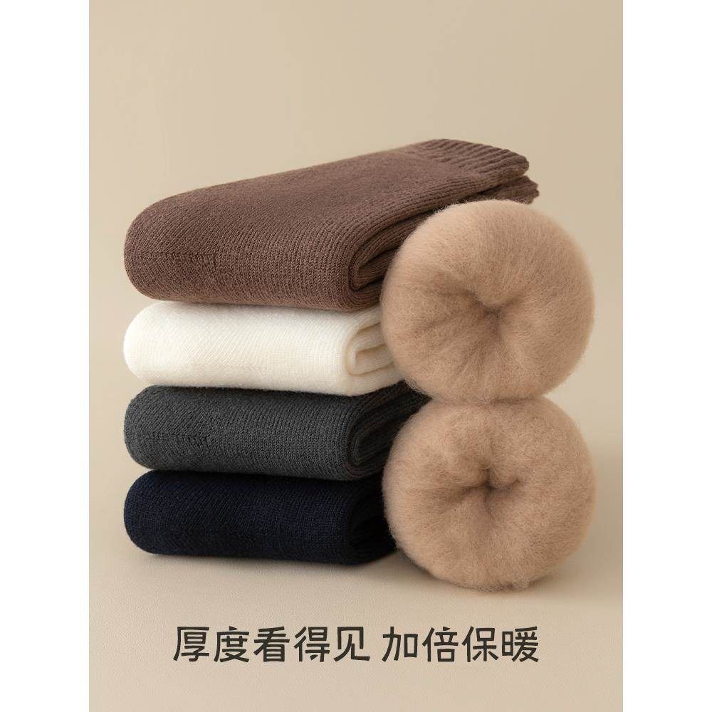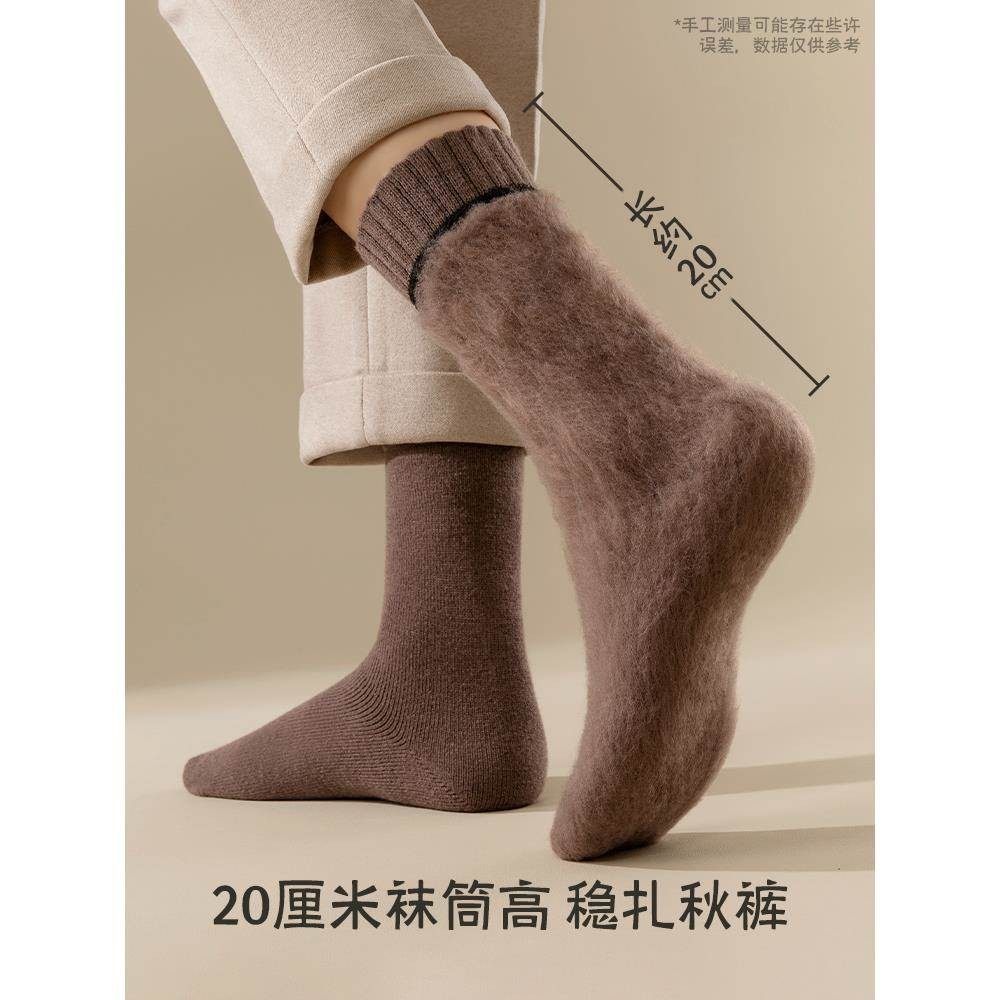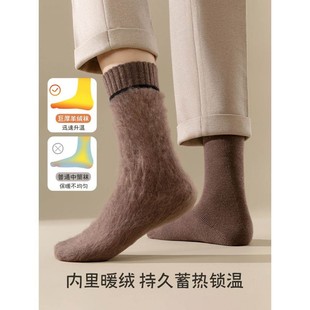 巨厚羊绒袜子男秋冬加厚加绒中筒袜棉袜冬天男士 羊毛保暖黑色长袜