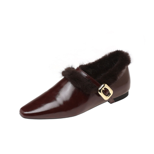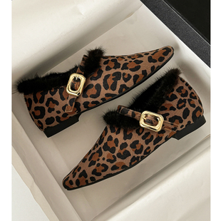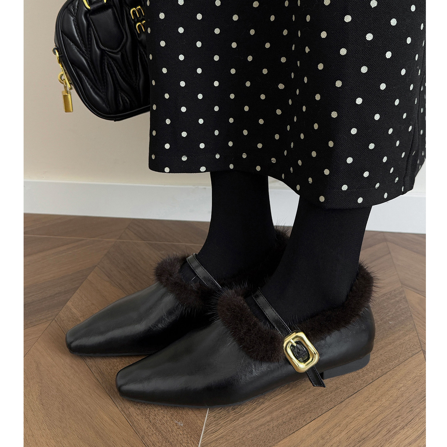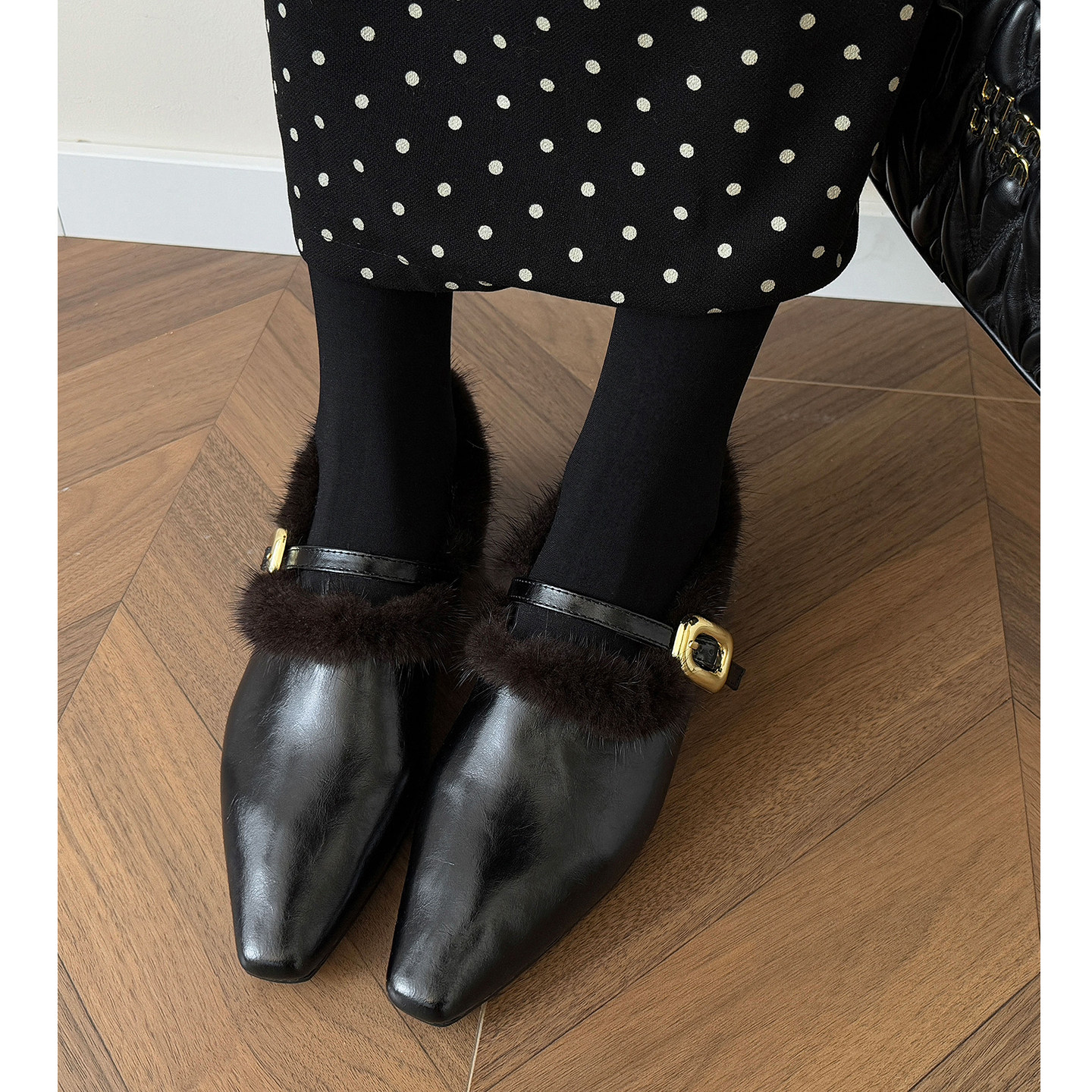 百搭圆头加绒加厚保暖毛毛棉鞋 小众复古厚底玛丽珍鞋 女2025年新款