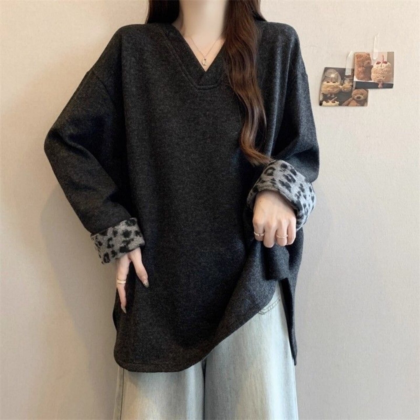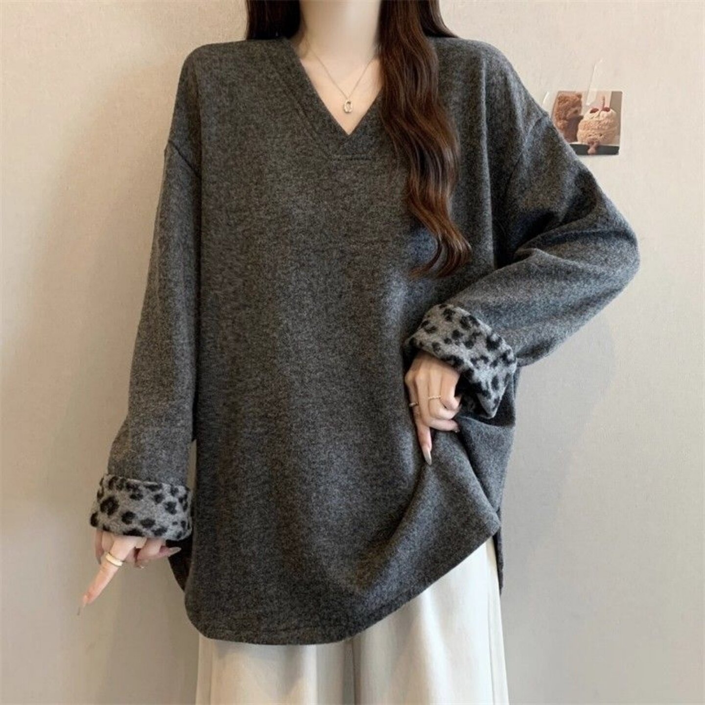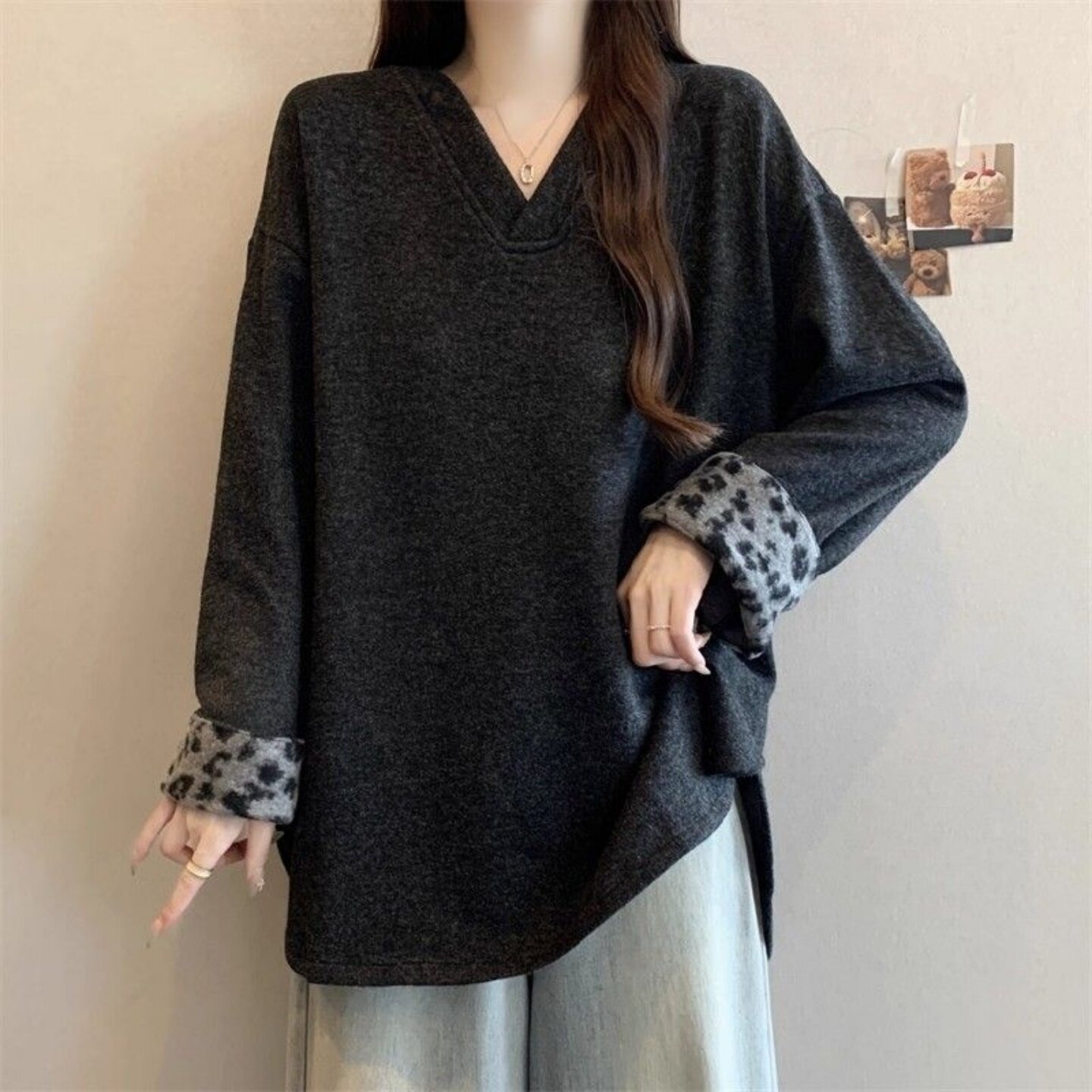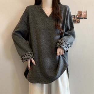 胖MM长袖 复古宽松遮肉休闲显瘦上衣 V领德绒打底卫衣女300斤超大码
