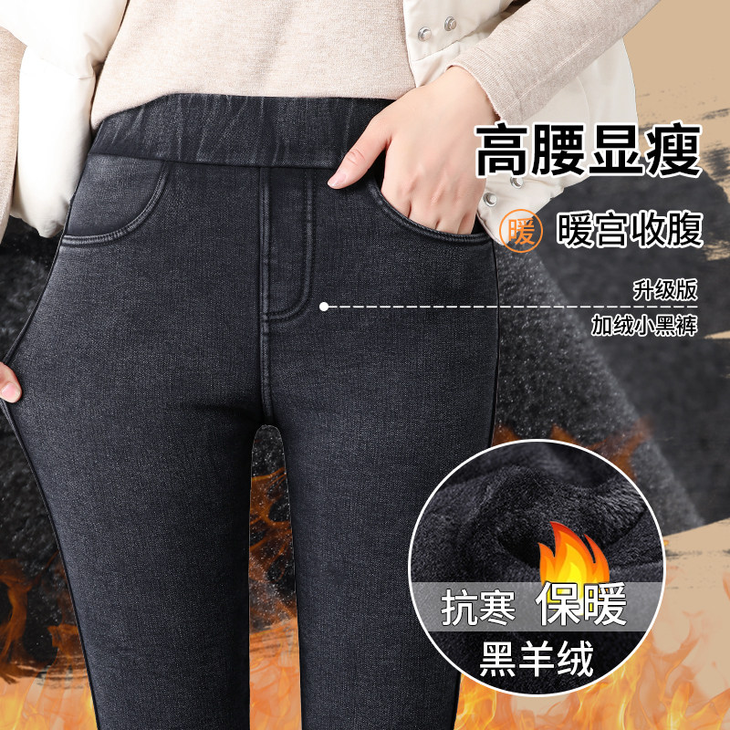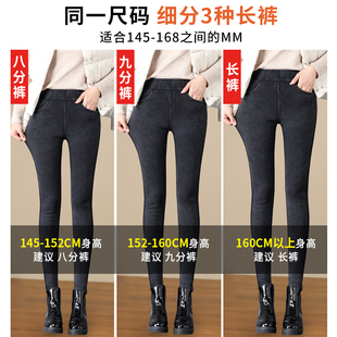 九 八分小个子高腰显瘦保暖小脚裤 加绒加厚牛仔打底裤 女外穿秋冬季