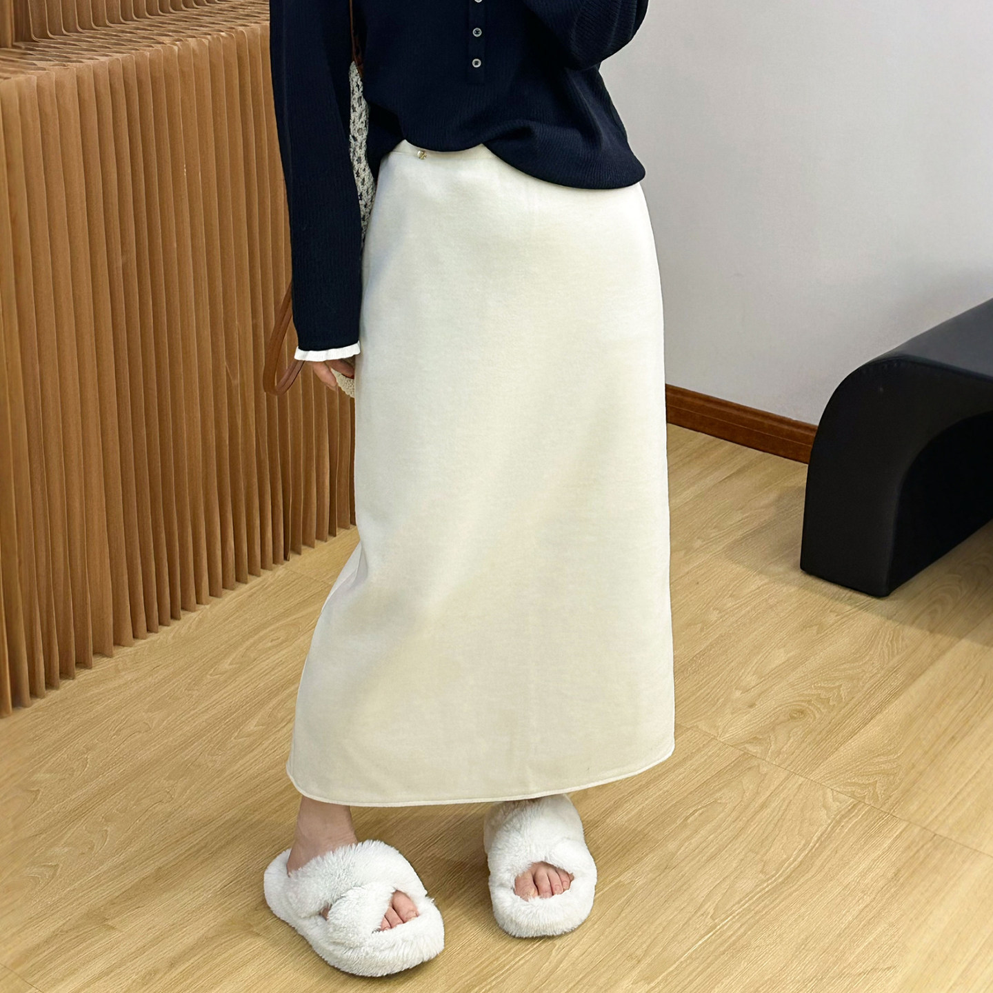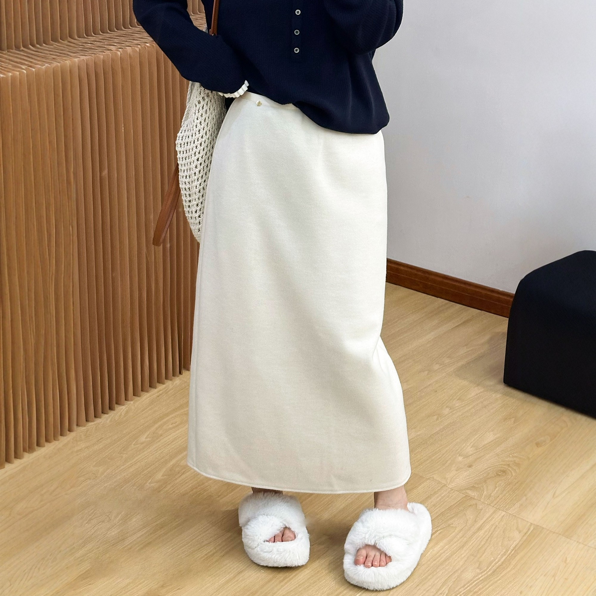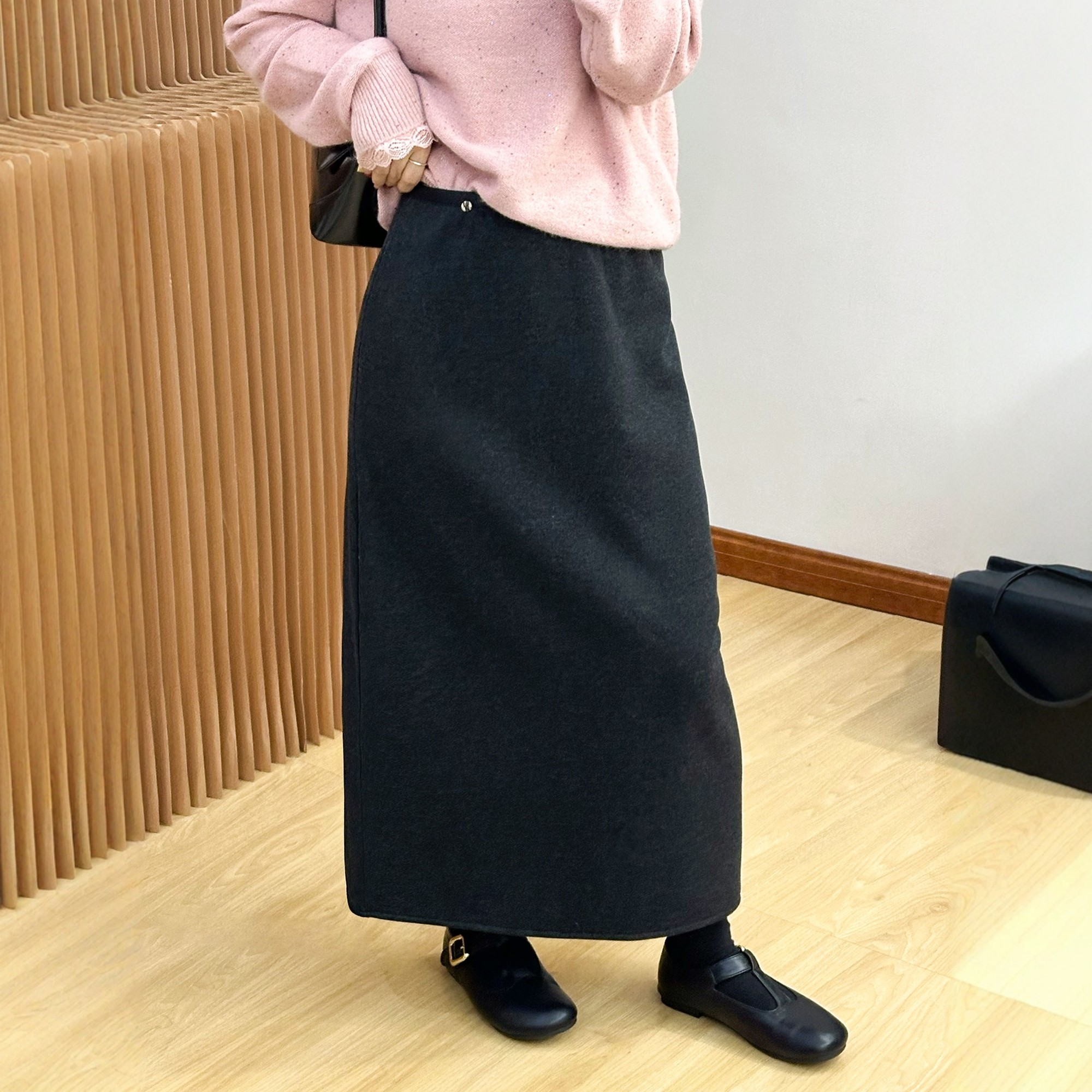 A字裙子潮 欧货女装 贝壳扣开叉羊毛呢半身裙女欧洲站2025冬装 新款