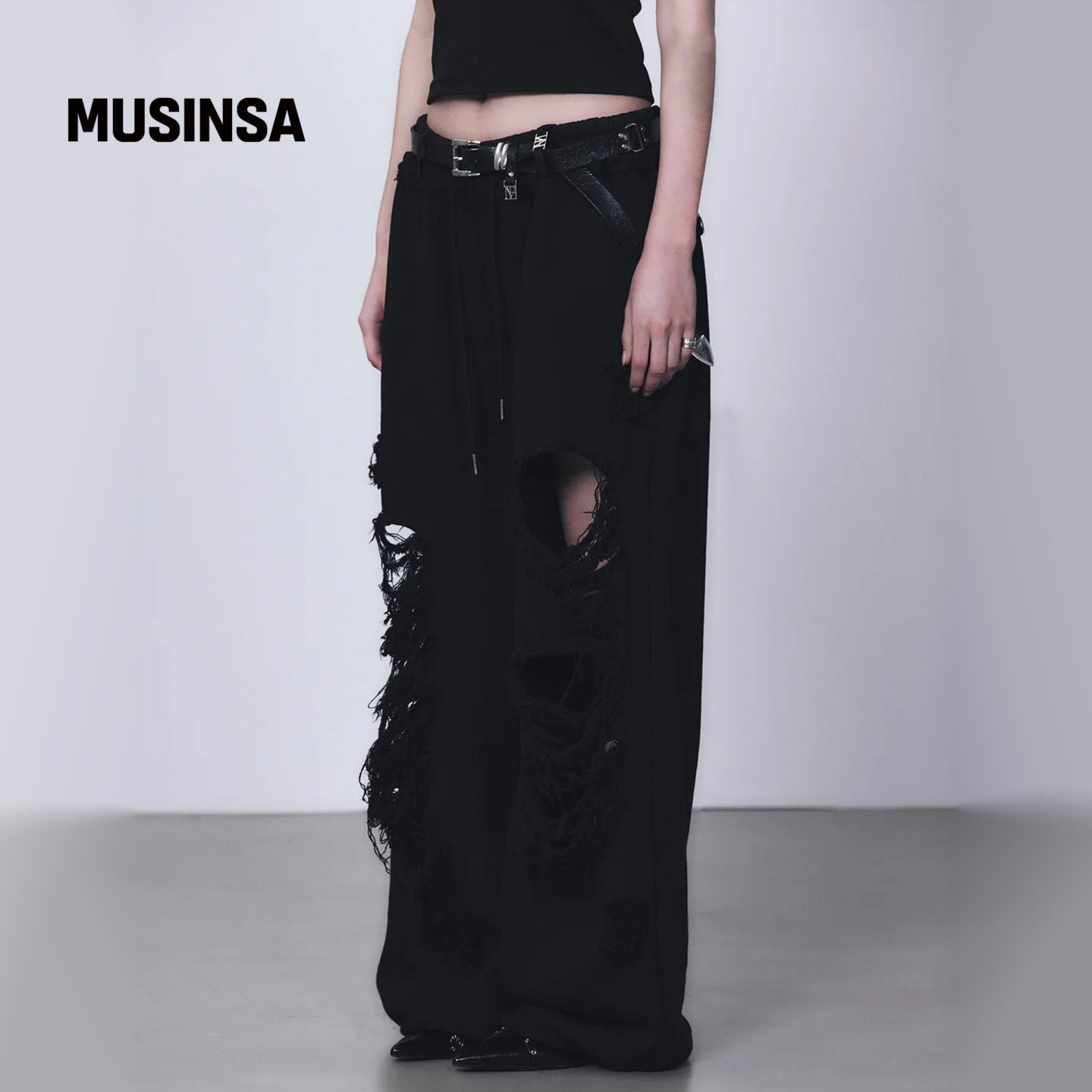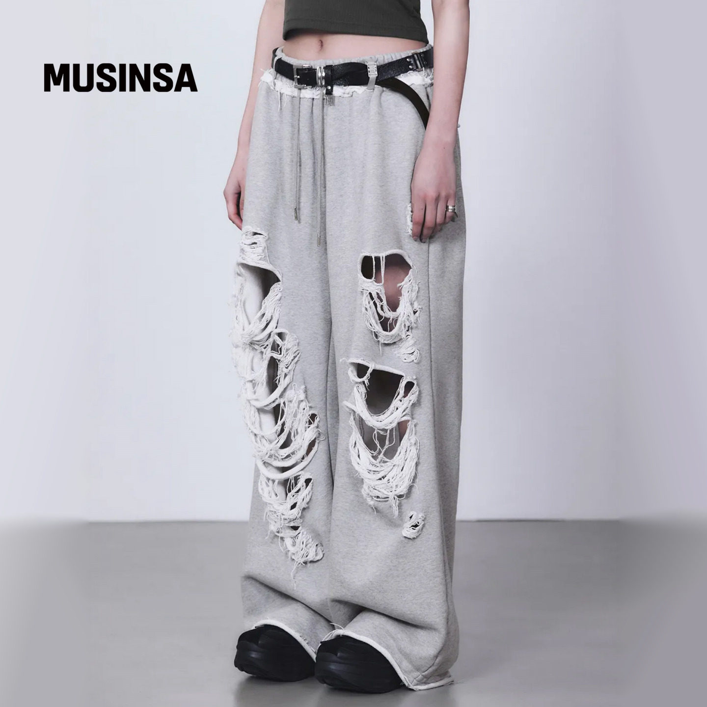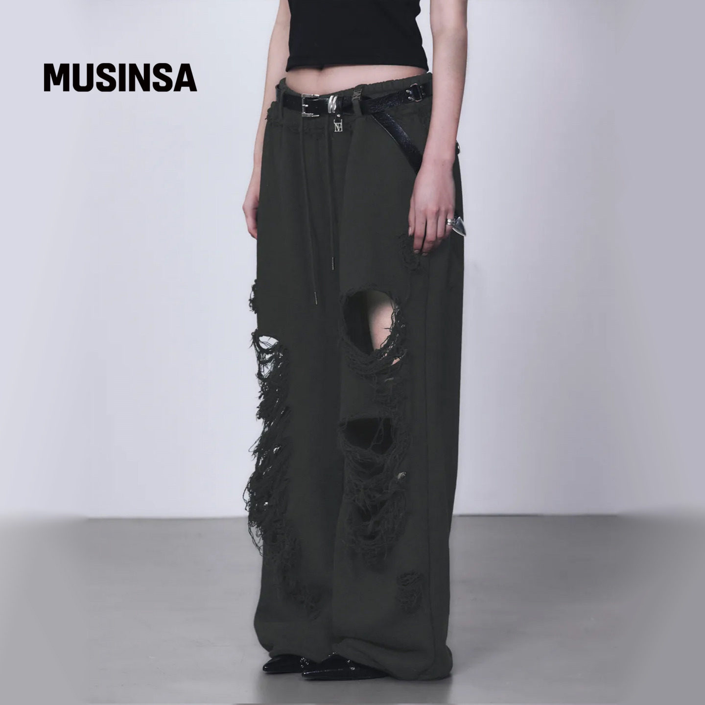 TREEMINGBIRD韩国25秋冬刮伤宽运动裤 MUSINSA 高腰垂感宽松长裤