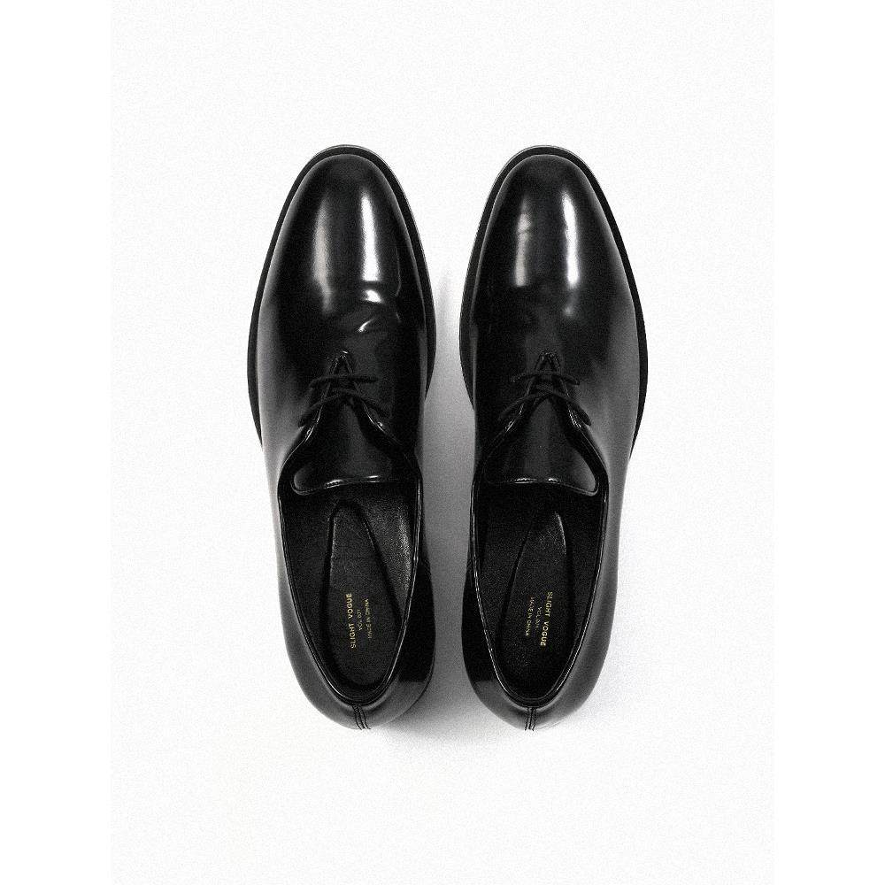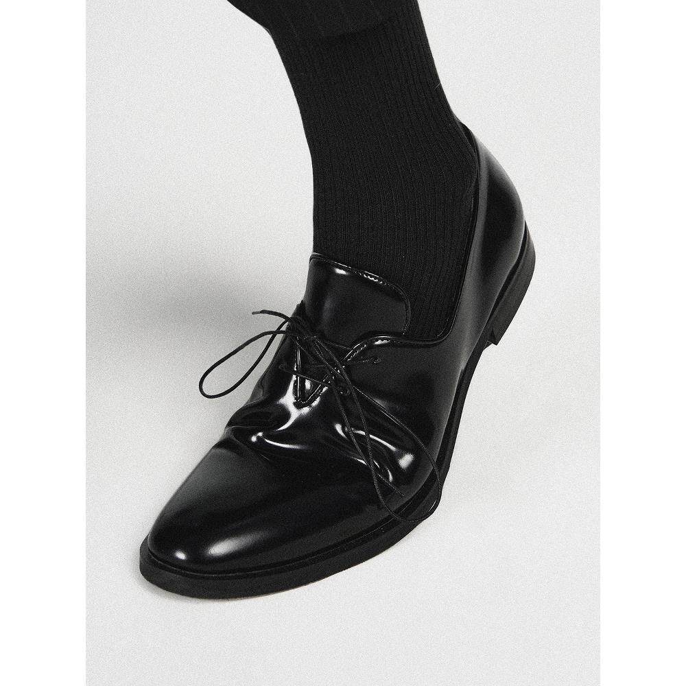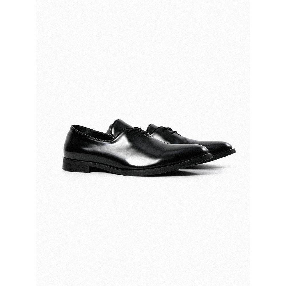 AMBSOM进口亮面牛皮流线裁片休闲薄底牛津鞋 百搭基础通勤 尖头皮鞋