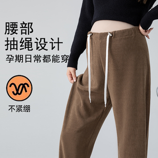 孕妇冬装 婧麒孕妇裤 加绒保暖棉裤 2025新款 冬外穿加厚直筒阔腿裤