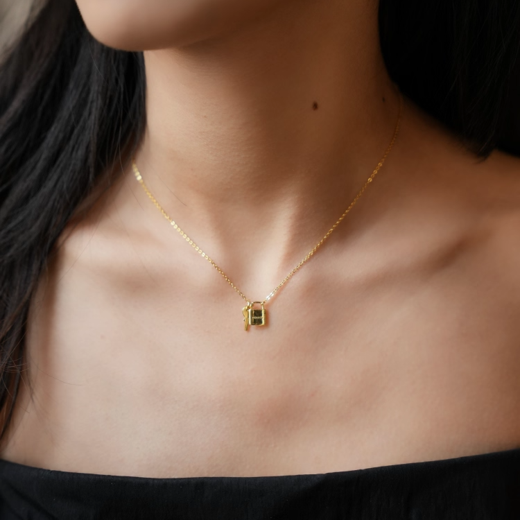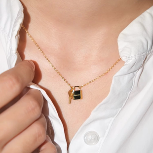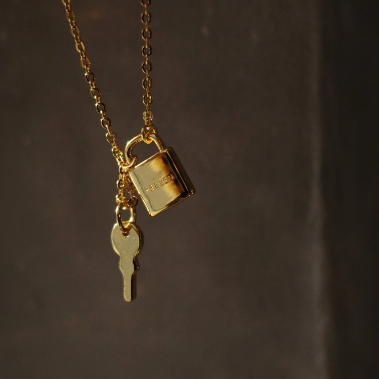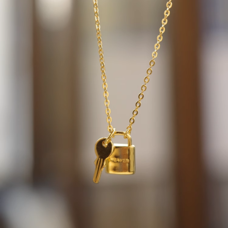 原创设计小金锁女款 钥匙 925银镀金项链 天 Heymen黑门