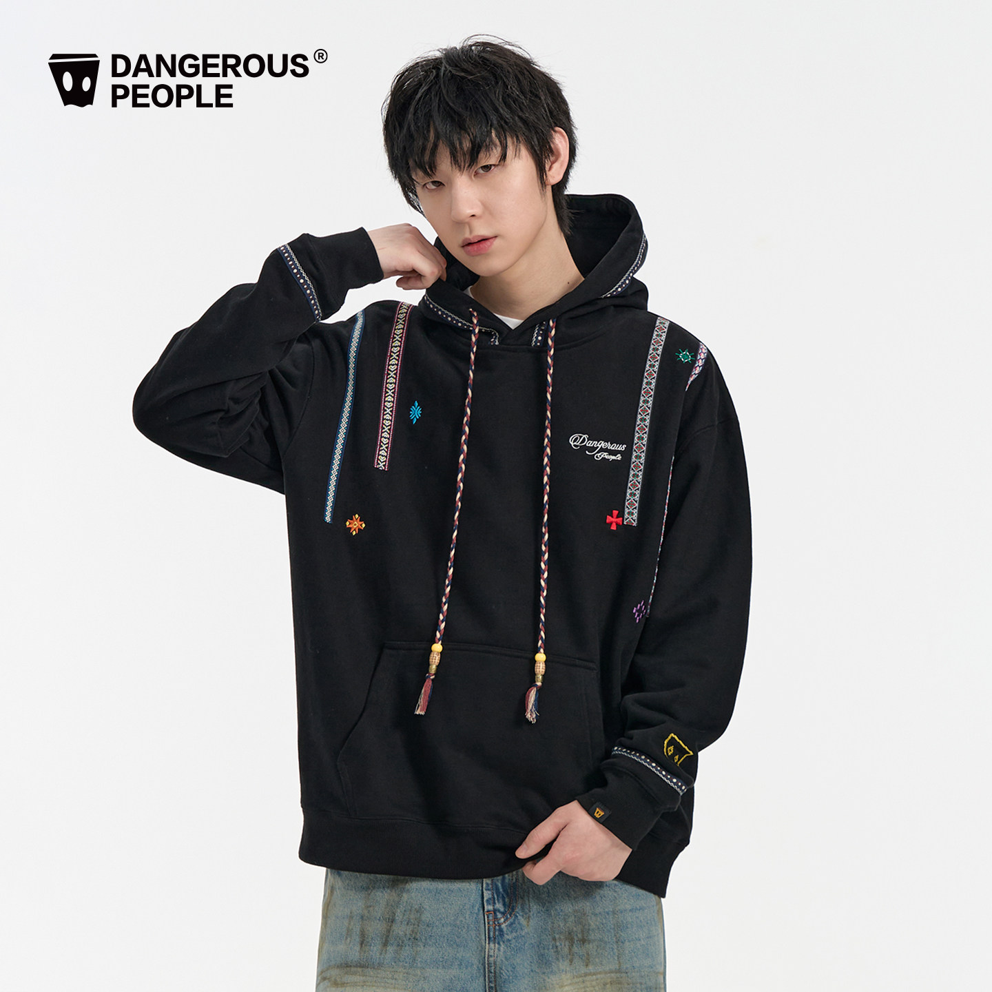 Dangerouspeople薛之谦dsp民族风刺绣连帽卫衣冬季 重磅百搭潮上衣