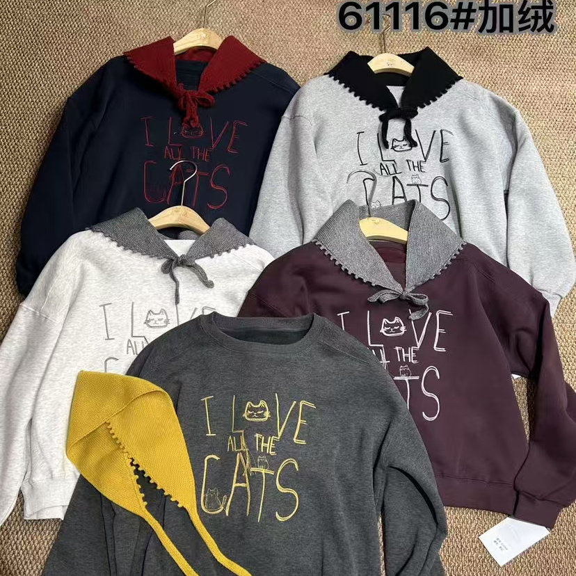 1986加绒卫衣2025秋圆领时尚 上衣61116 百搭休闲宽松长袖