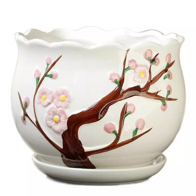花盆陶瓷家用多肉花盆大号特大号特价 吊兰绿萝 清仓带托盘创意个性