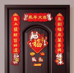 全磁吸2026年卡通马年对联春节套装 饰用品福字门贴春联布置 新年装