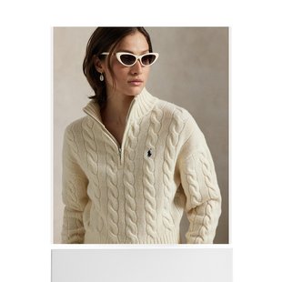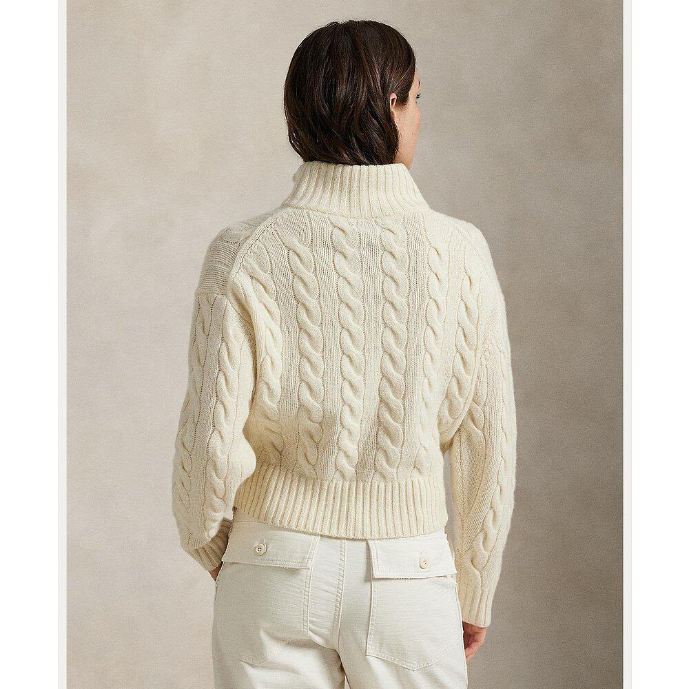 日本直邮Cable 羊毛羊绒半拉链毛衣针织连帽长袖