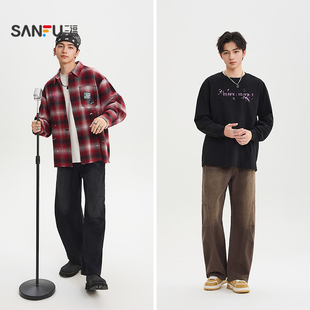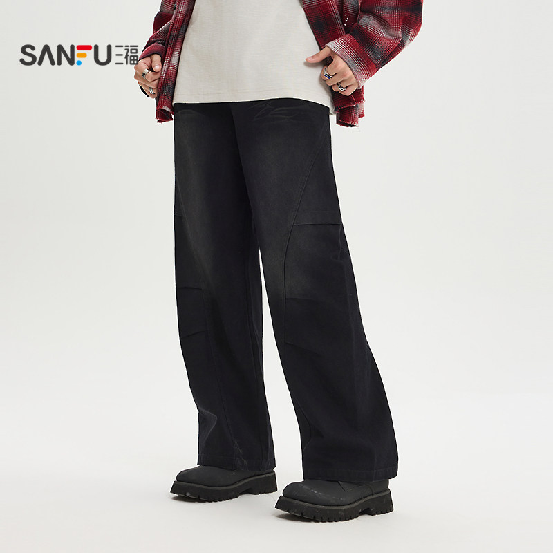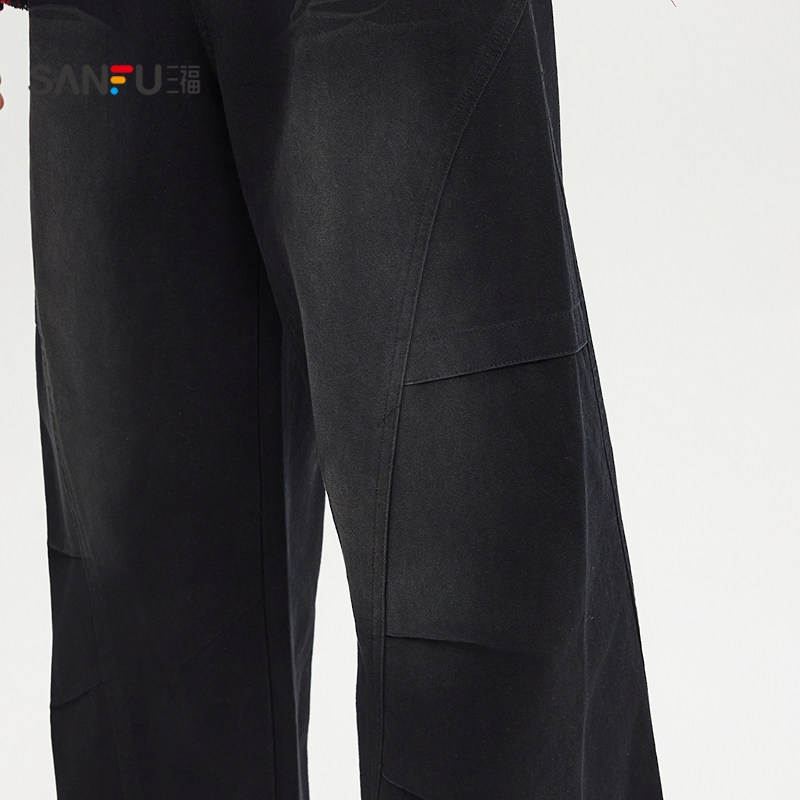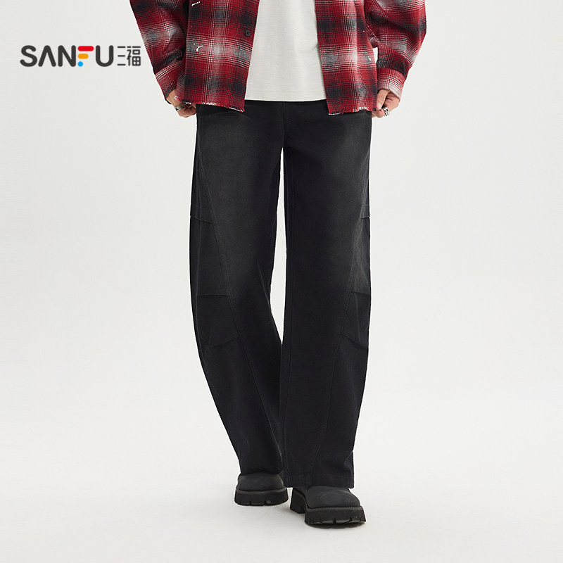 猫须洗水弯刀裤 时尚 休闲裤 男阔版 三福2026春季 橡筋腰宽松长裤 新款