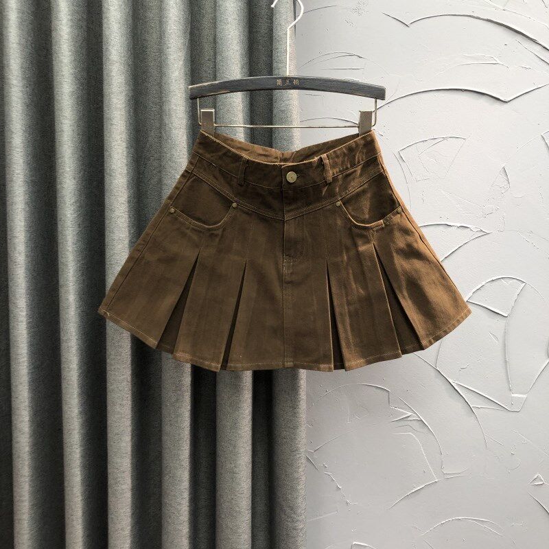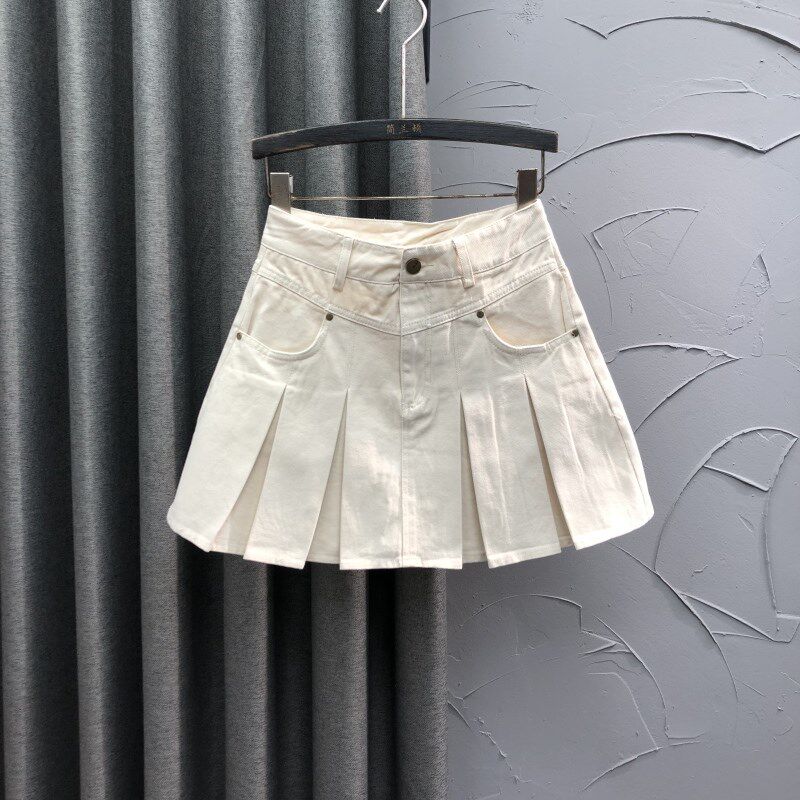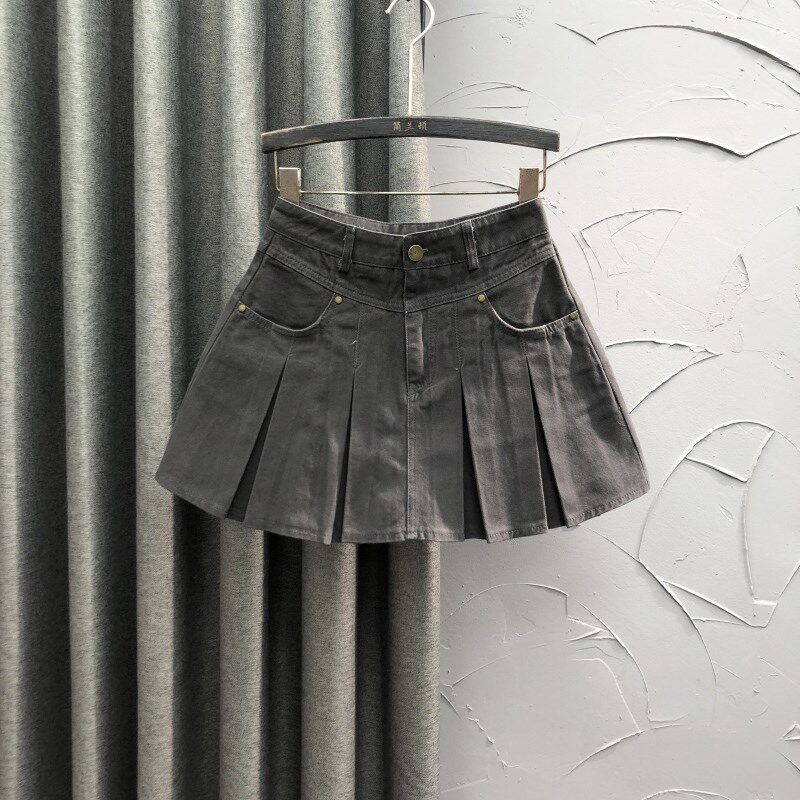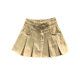 韩版 高腰减龄牛仔短裙女2024年春夏洋气学院风A字辣妹百褶半身裙