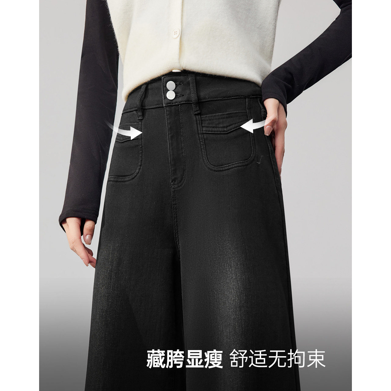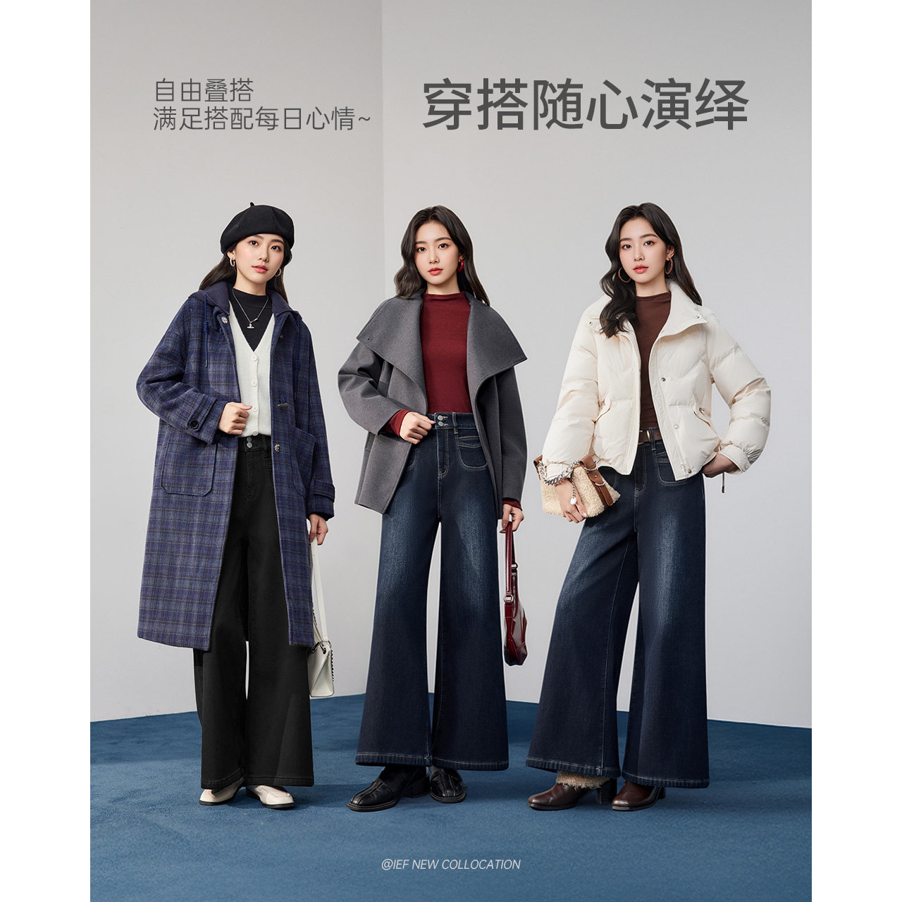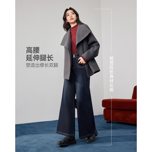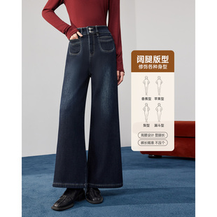 复古通勤气质百搭加绒保暖牛仔阔腿裤 IEF 港式 新款 爱依服2025冬季