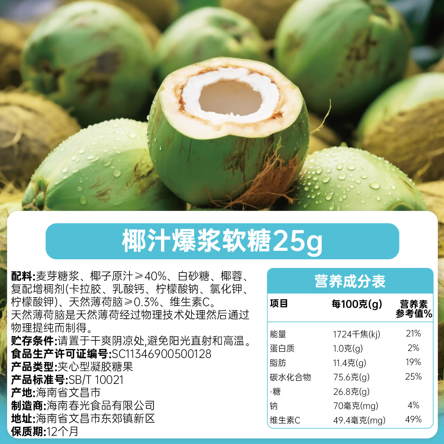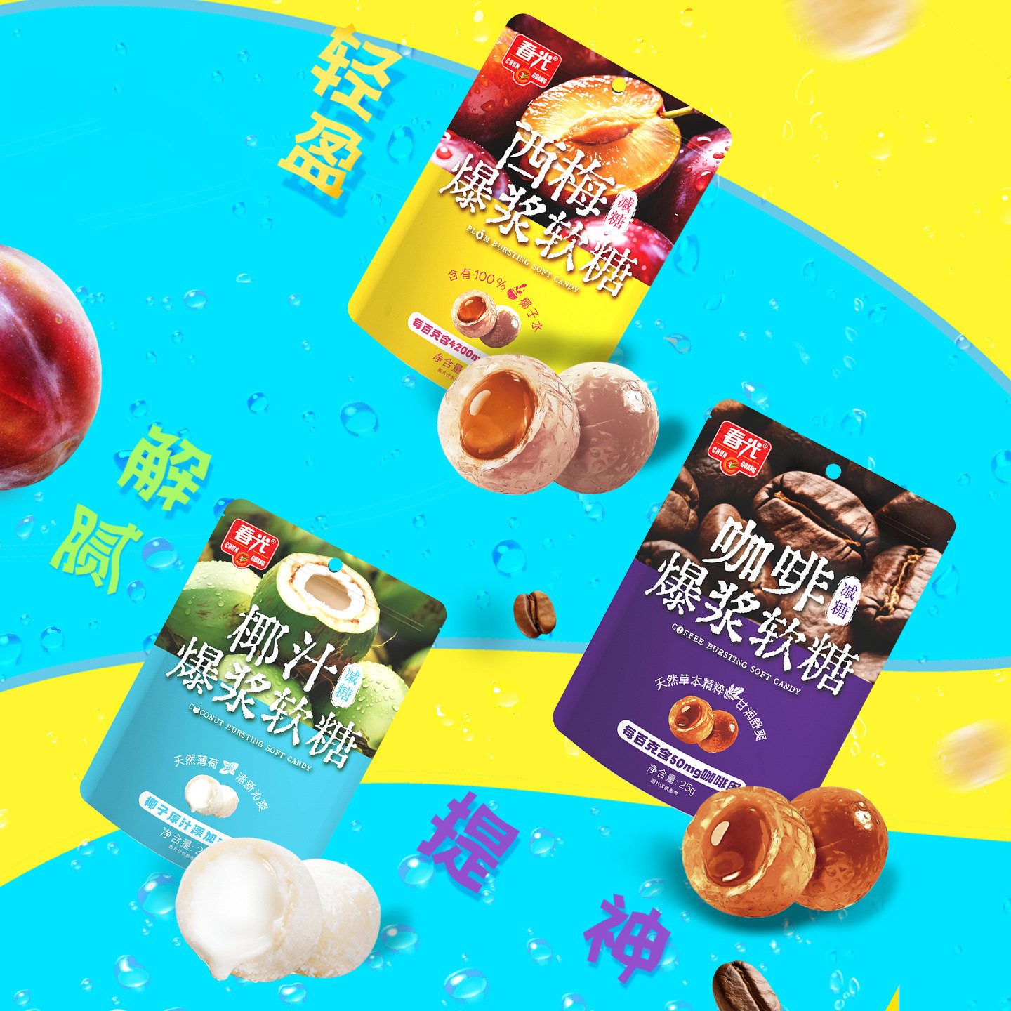 春光海南特产椰汁爆浆软糖西梅咖啡多种口味零食糖果小吃