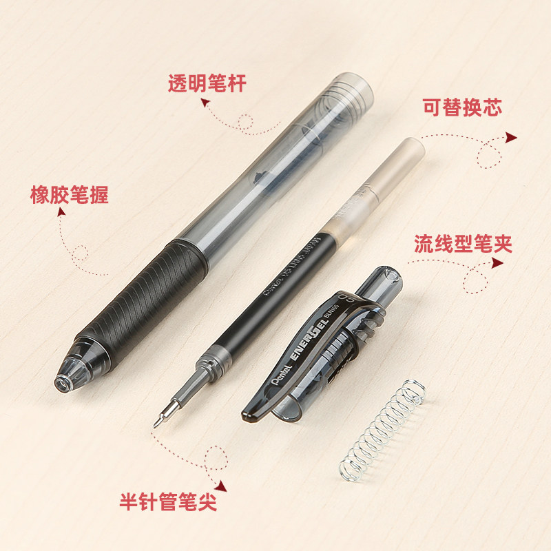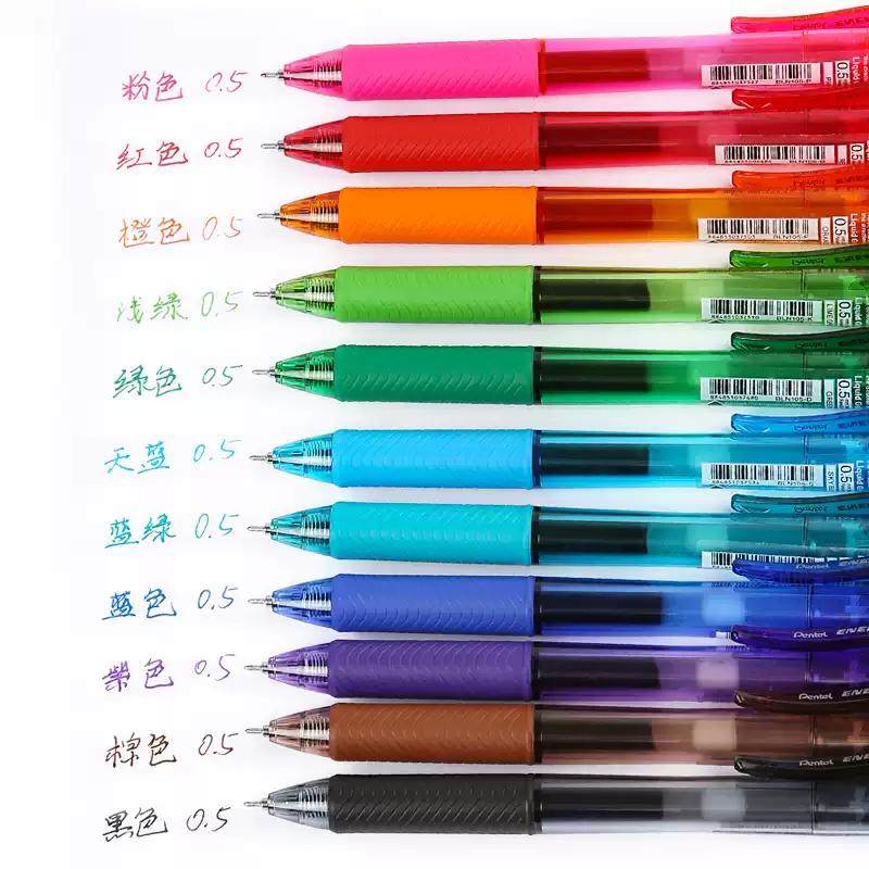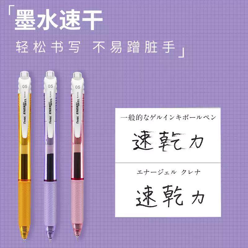 日本Pentel派通BLN105中性笔针管式 按动彩色蓝红笔energel水笔顺滑速干签字笔蓝色学生用考试黑笔彩笔0.5mm