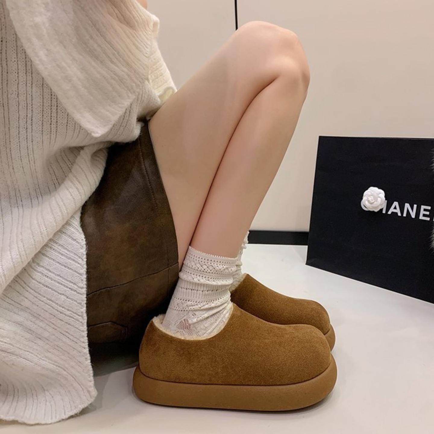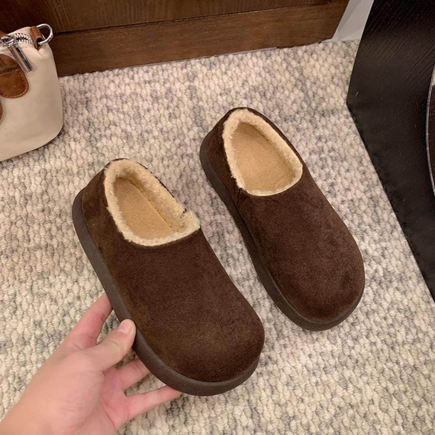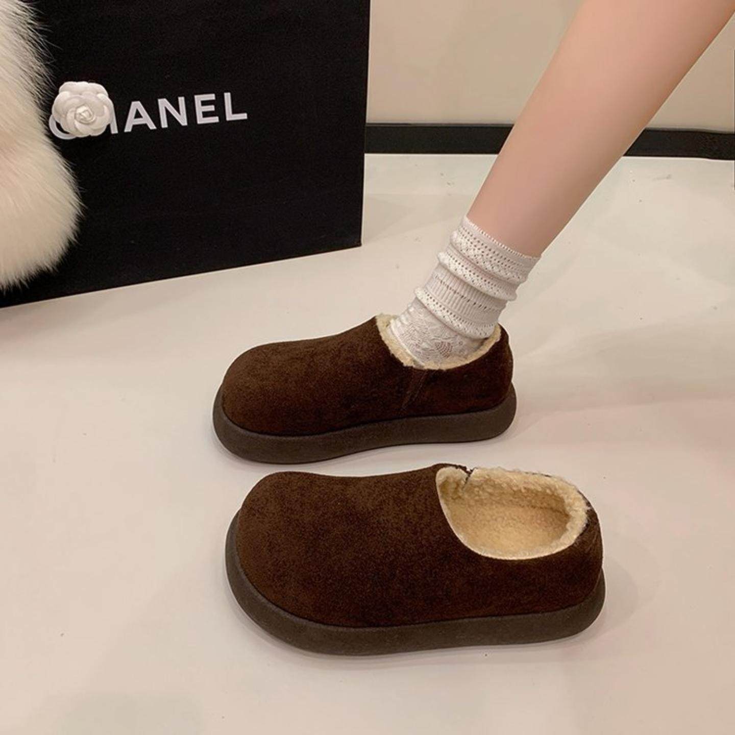 户外纯色套脚面包英伦风女防滑保暖鞋 新款 冬季 厚底加绒棉鞋