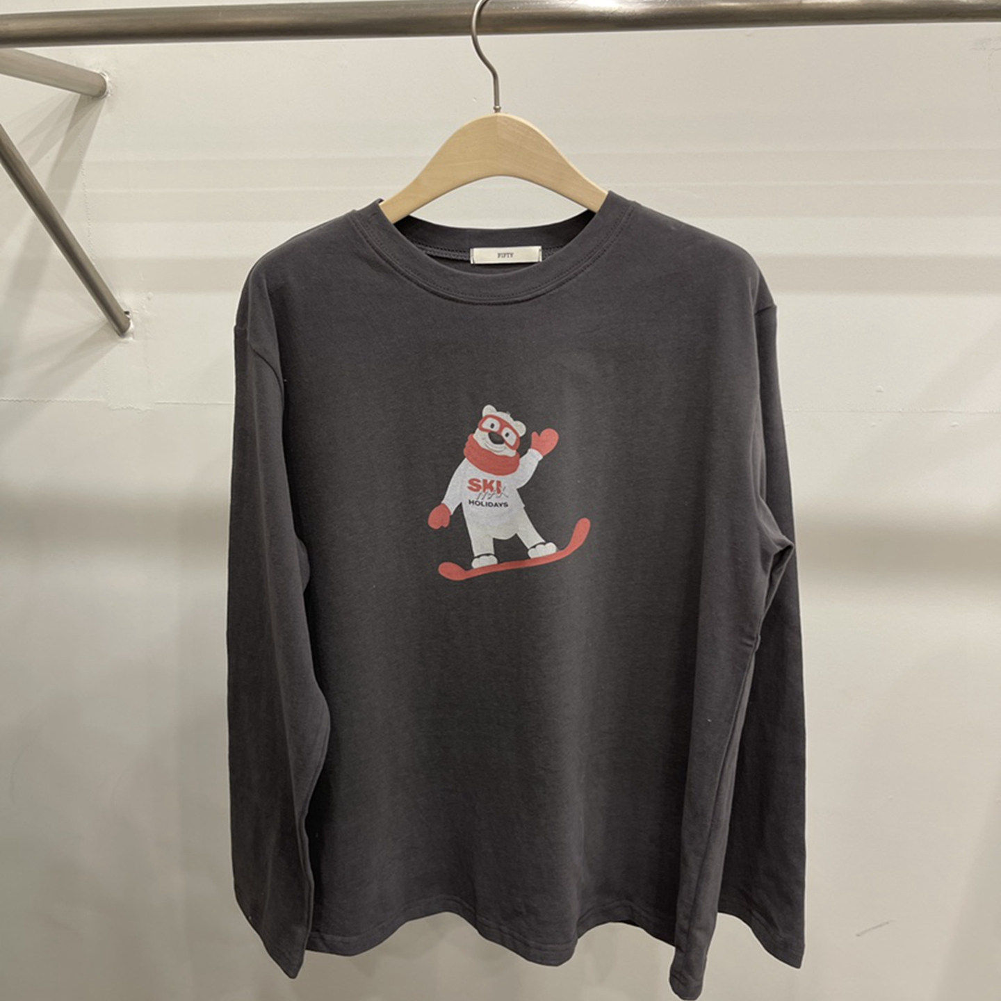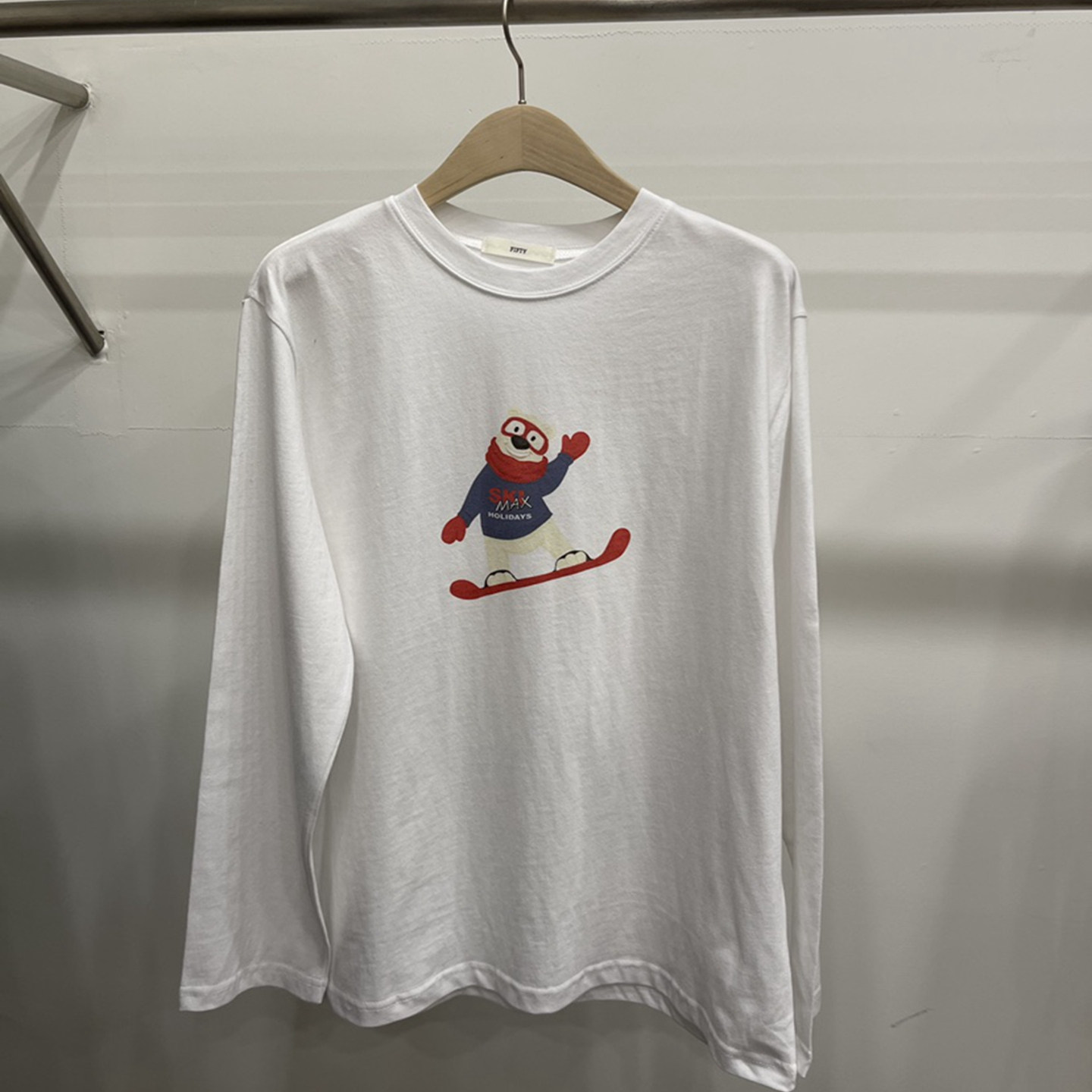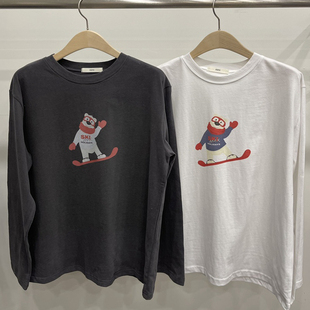 现韩国东大门代购 T恤 女FIFTY2025冬百搭宽松卡通印花纯棉圆领长袖