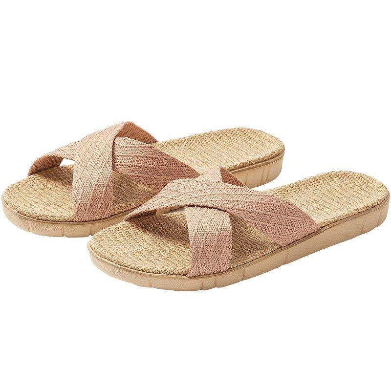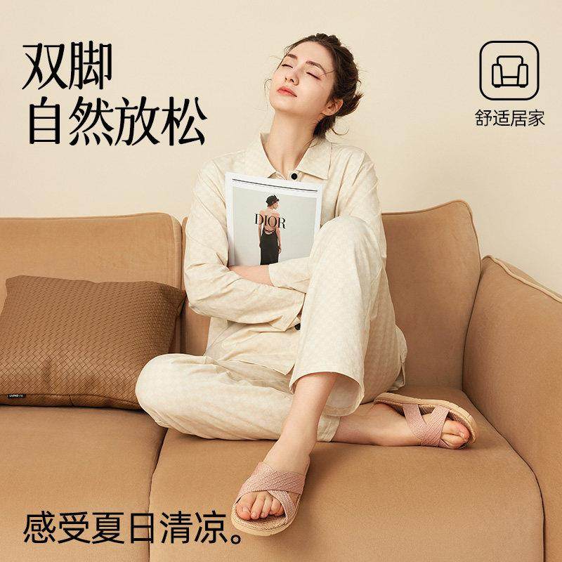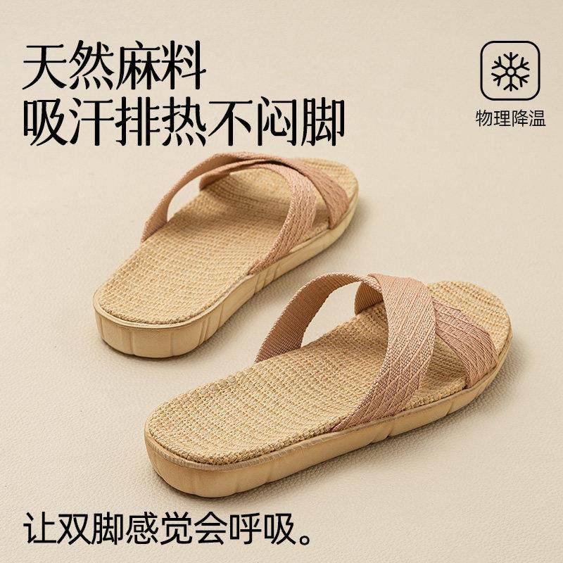 通用男士 2双装 室内吸汗防滑家用防臭四季 女夏季 居家抗菌亚麻拖鞋