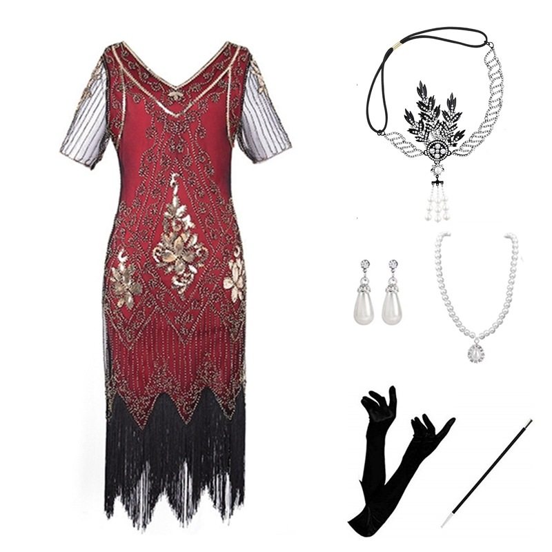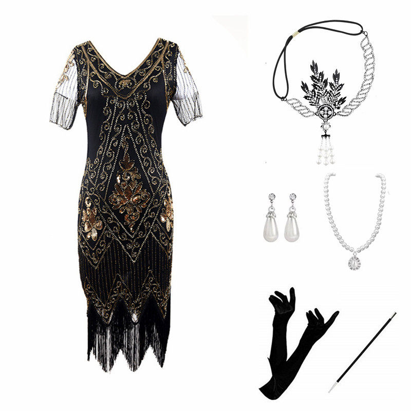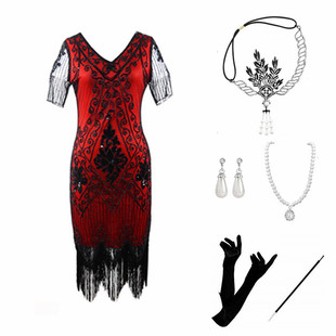 欧美万圣节性感亮片流苏连衣裙复古1920S盖茨比聚会派对礼服