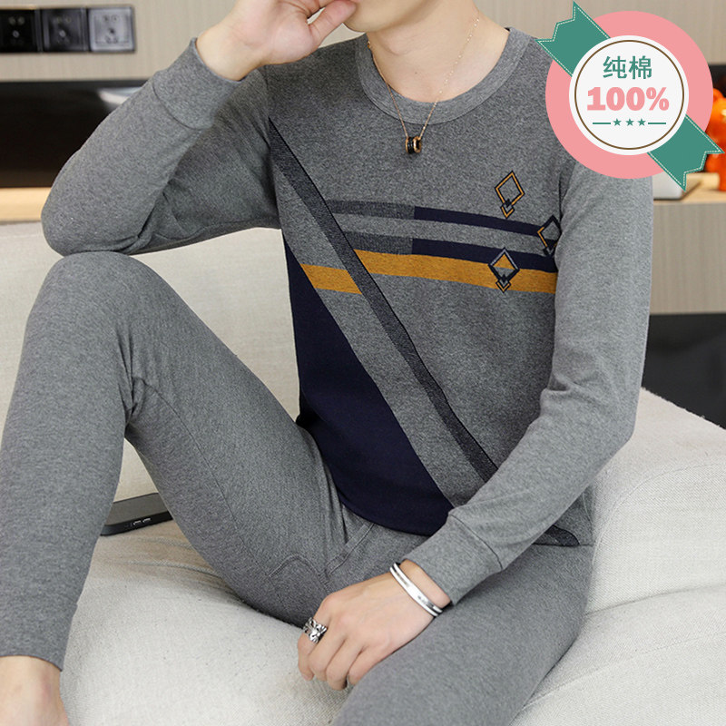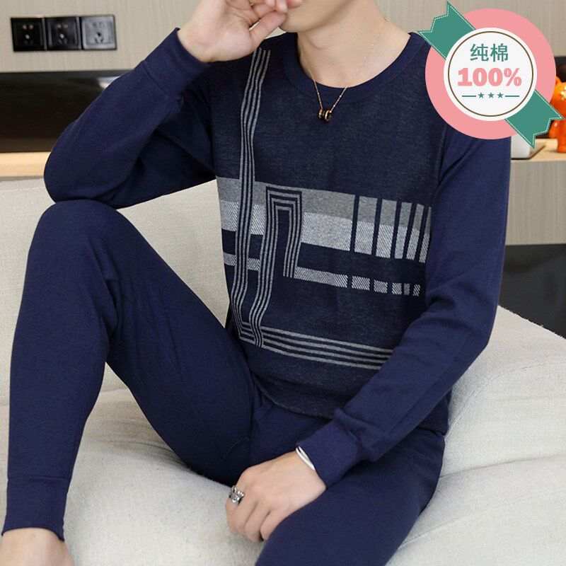 内衣套装 青年圆领青少年保暖全棉秋衣秋裤 纯棉薄款 冬季 男 新款 男士