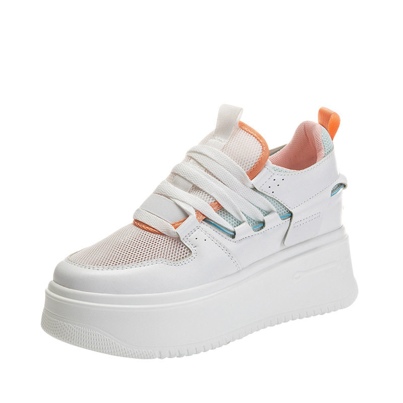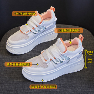 女拼色鞋 真皮2025新款 松糕平底鞋 皮面内女士休闲板鞋 业春秋 小白鞋