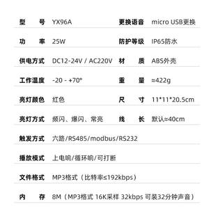 YX96A串口485工业声光报警器25W大功率开关量语音播报防水警报灯