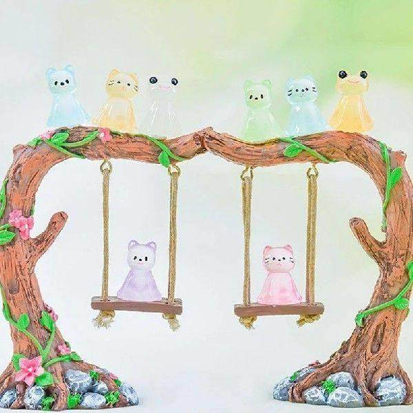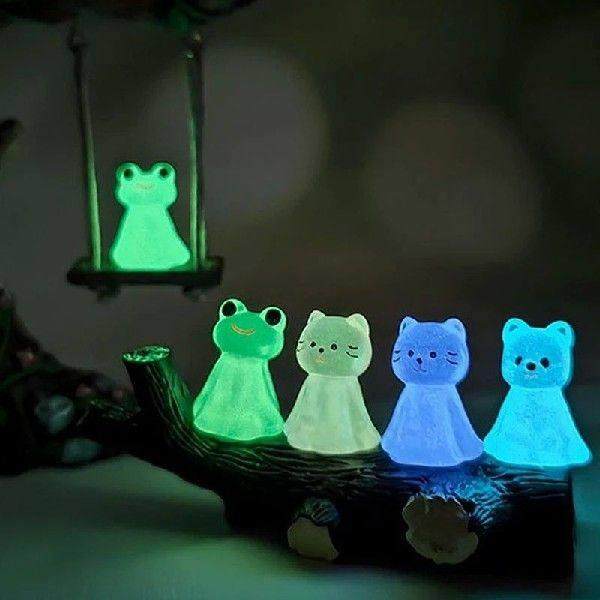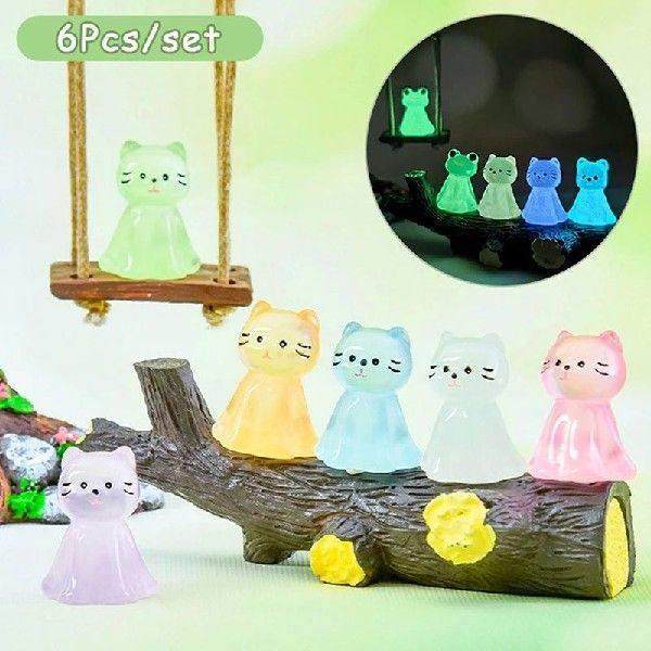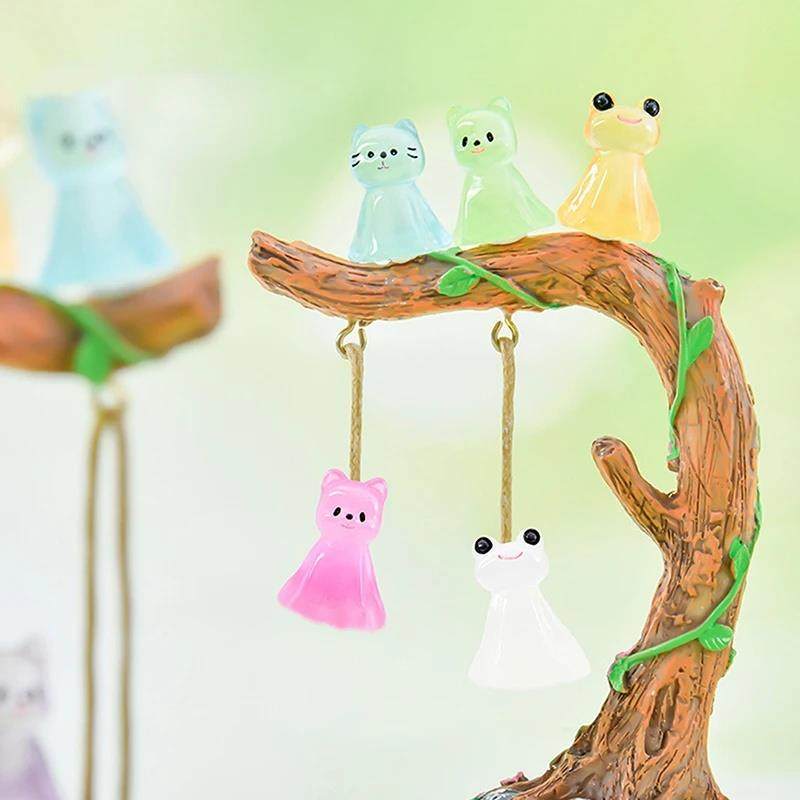 Ornament Mini Puppy 6Pcs Frog Animal Cat Doll Luminous