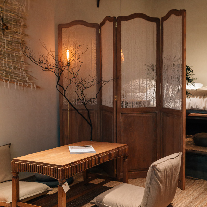 客厅隔断栅栏 OLD 镂空棉麻帘 移动折屏 怀旧复古屏风 蘑菇空间