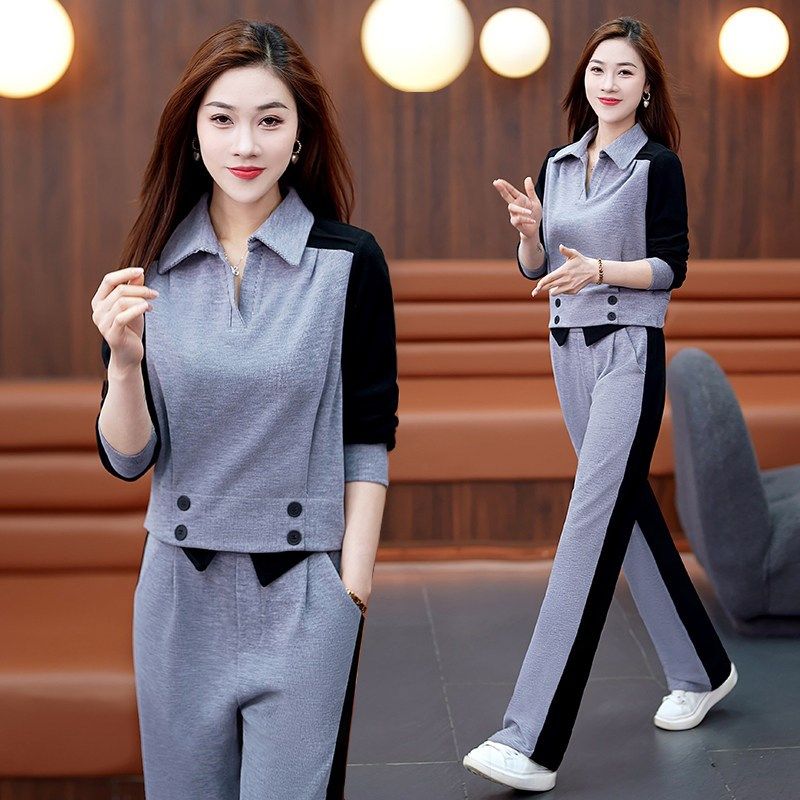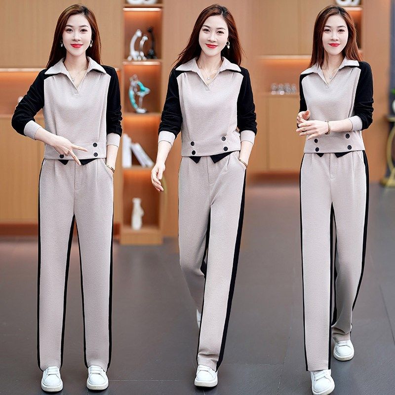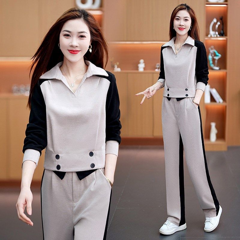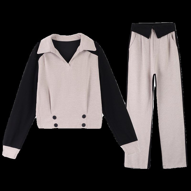 洋气设计感翻领显瘦高档阔腿裤 2025新款 两件套 女春季 欧货运动套装