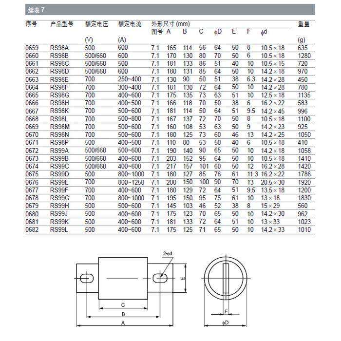 茗熔圆管螺栓型快速熔断器RS98M700V 450A600A